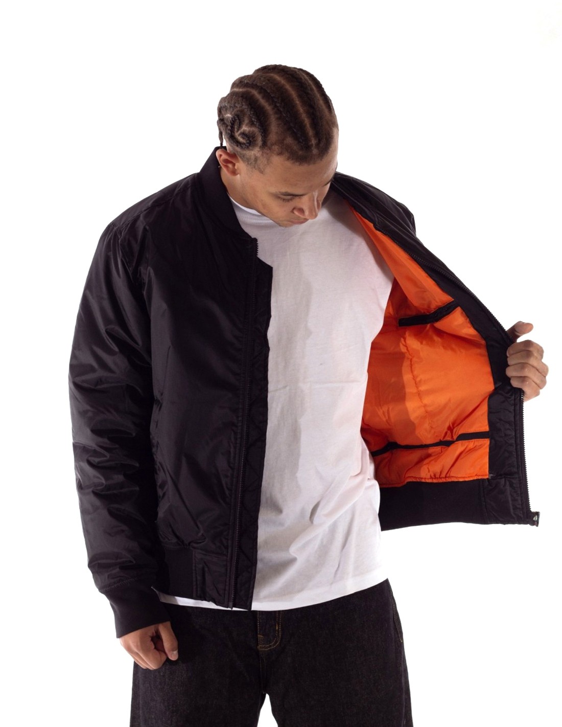 BSAT Flight Bomber Jacket er en moderne fortolkning af den klassiske pilotjakke – lavet i kraftigt nylon med den ikoniske orange lining.
