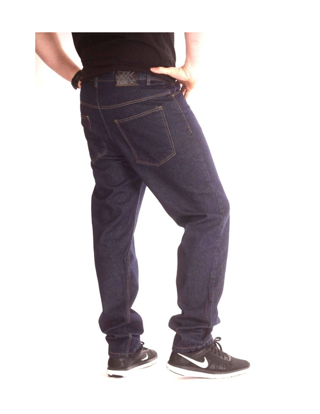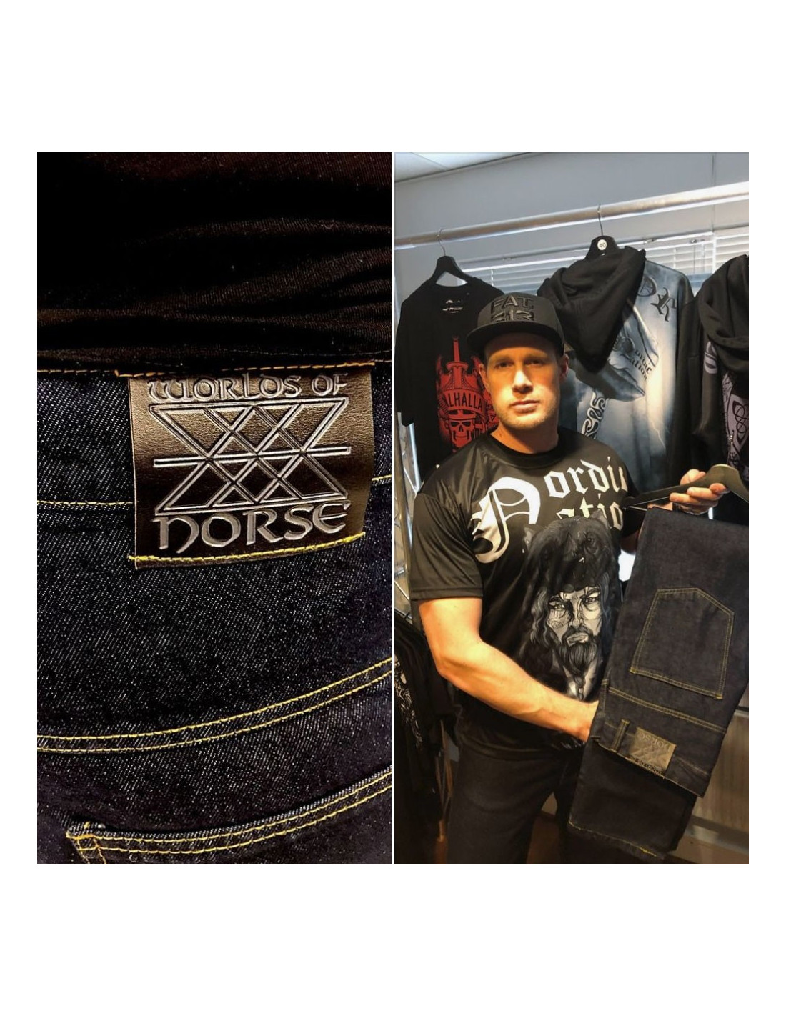 Til alle de helt unikke T-Shirts, TankToppe og Hooodies fra Nordic Worlds udgiver vi nu super coole og straight blue Jeans. Jeansene er produceret i en klassisk blå farve. Jeansene er brandet på buksens patch med et indgraveret symbol fra Nordisk mytologi og fra vikingetiden. Symbolet betegnes som FATE eller Web of Wyrd. I vikingetiden havde symboler stor betydning. De sammenhængende linjer i Web of Wyrd symbolet skildrer den uendelige sammenhæng mellem liv og skæbne i menneskers tilværelse. Det siges også at hele Vikingetidens alfabet er indeholdt i symbolet. Pasform: Regular Fit.
