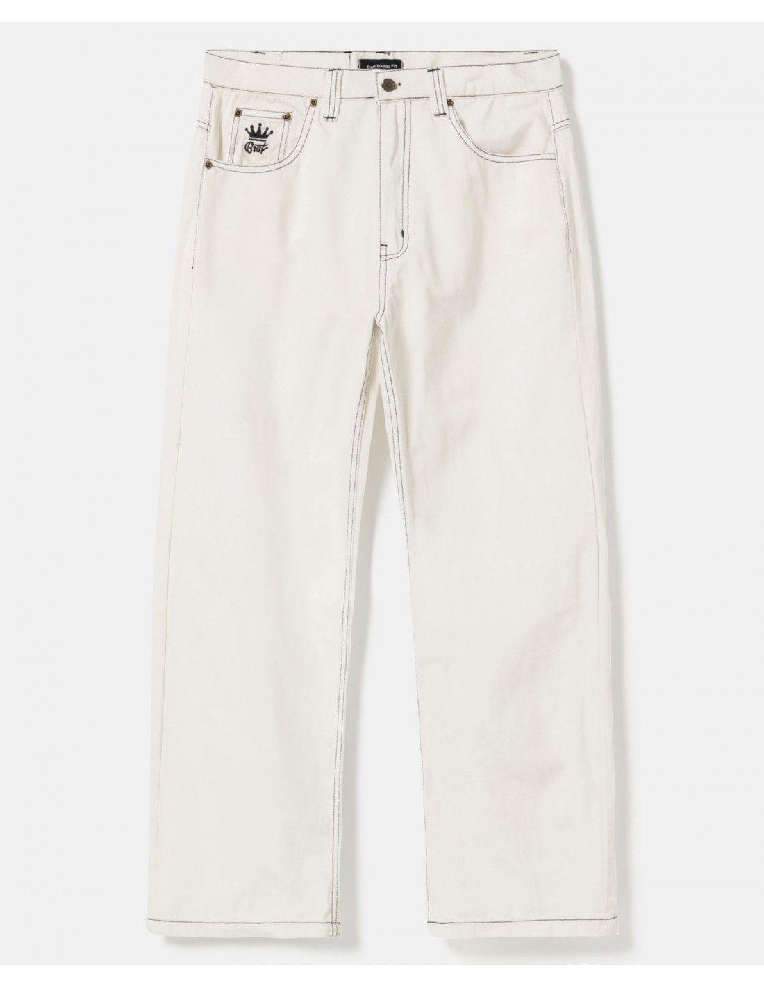 - Disse bukser har lynlås lukning, kaldet zip-fly (altså en lynlås lukning med en enkelt knap i livet)