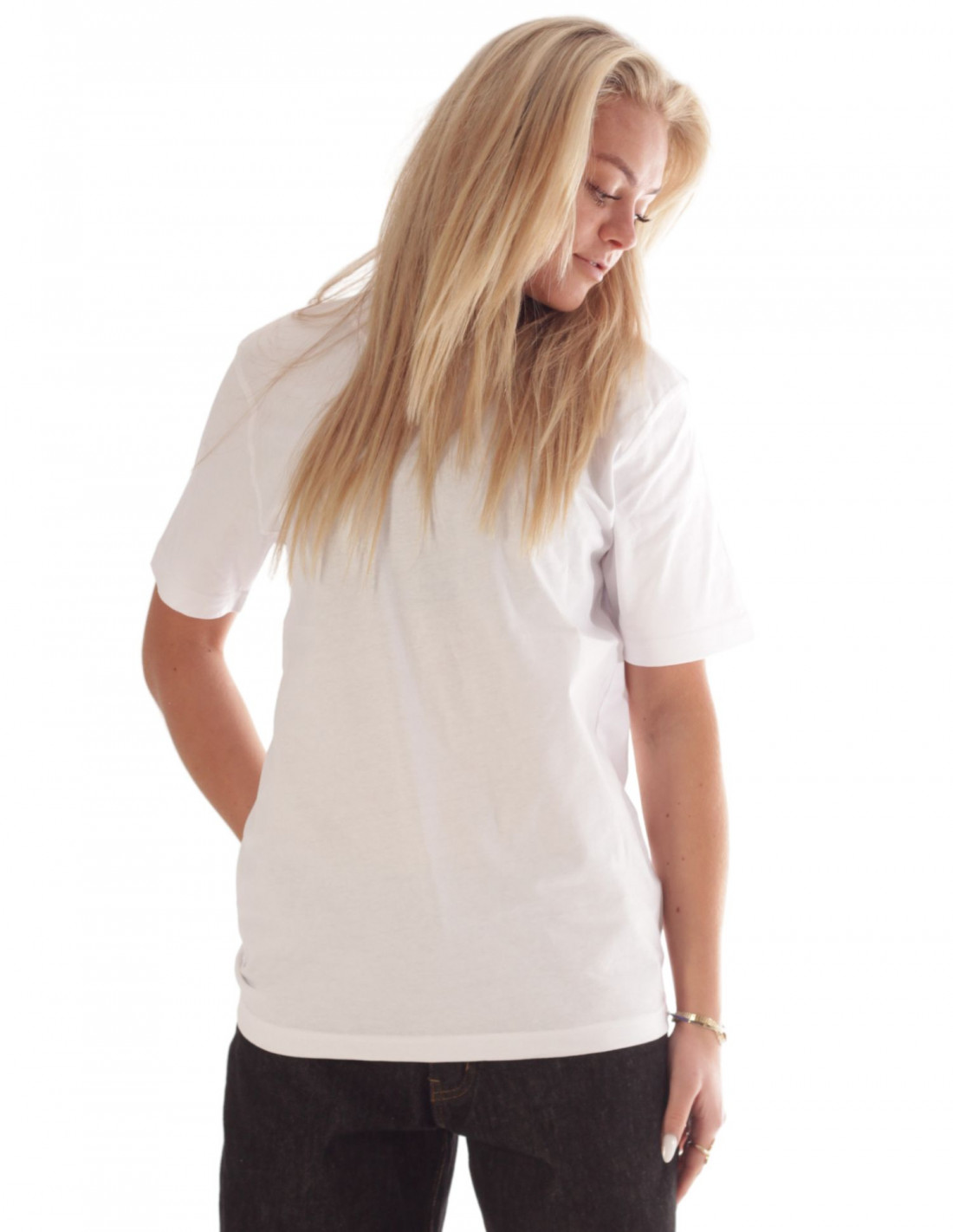 Baggy hvid T-Shirt i økologisk bomuld. Rund halsudskæring med stretch.
