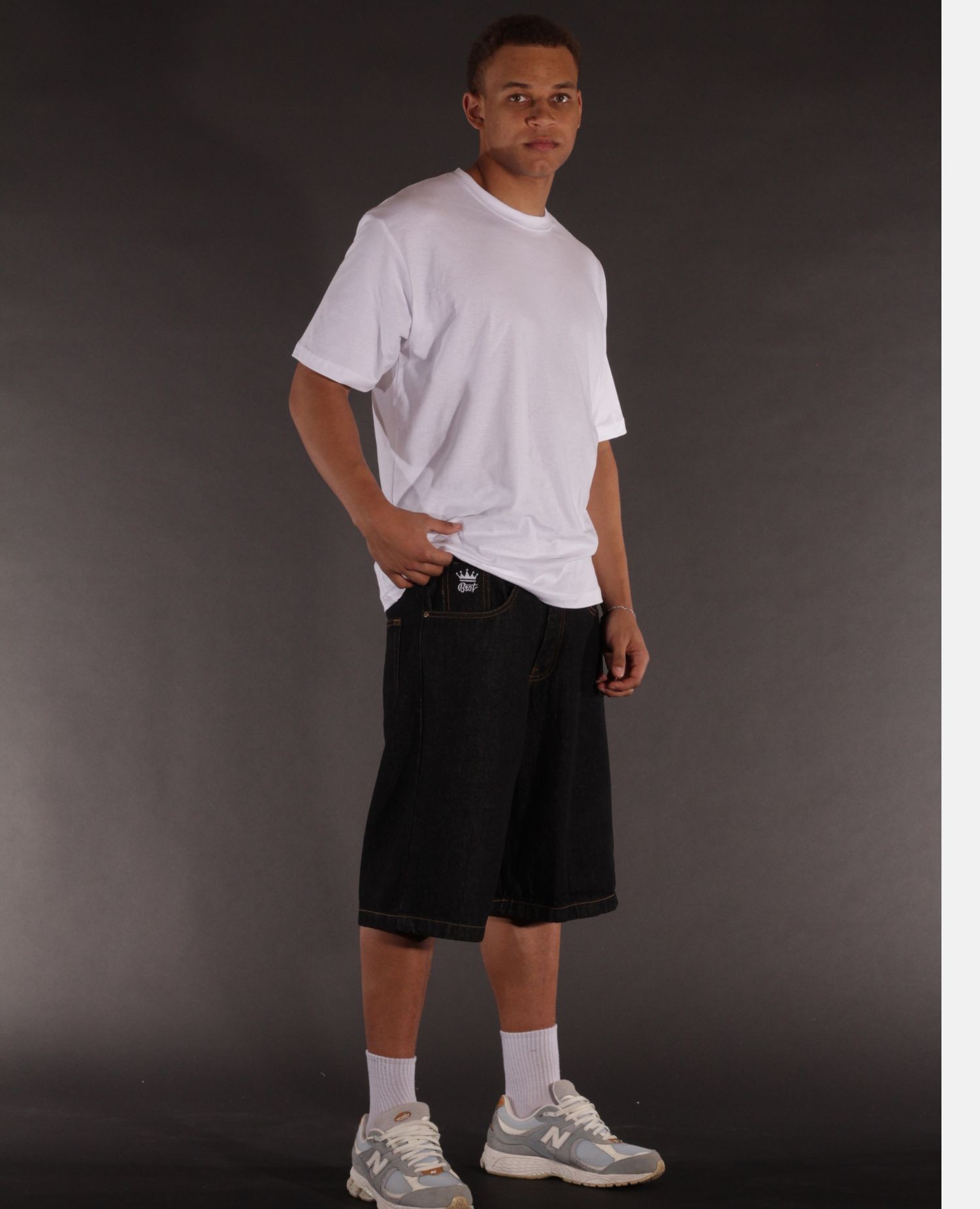 BSAT Bronx Plain Black Baggy Jorts er baseret på en af de mest populære plain baggy fits i BSAT-universet, nu skåret ned til en sommerklar jorts-version. Det helt sorte look holder dem clean, skarpe og nemme at style, mens den loose silhuet giver dem den afslappede energi, der får hele outfittet til at sidde rigtigt uden at prøve for hårdt.