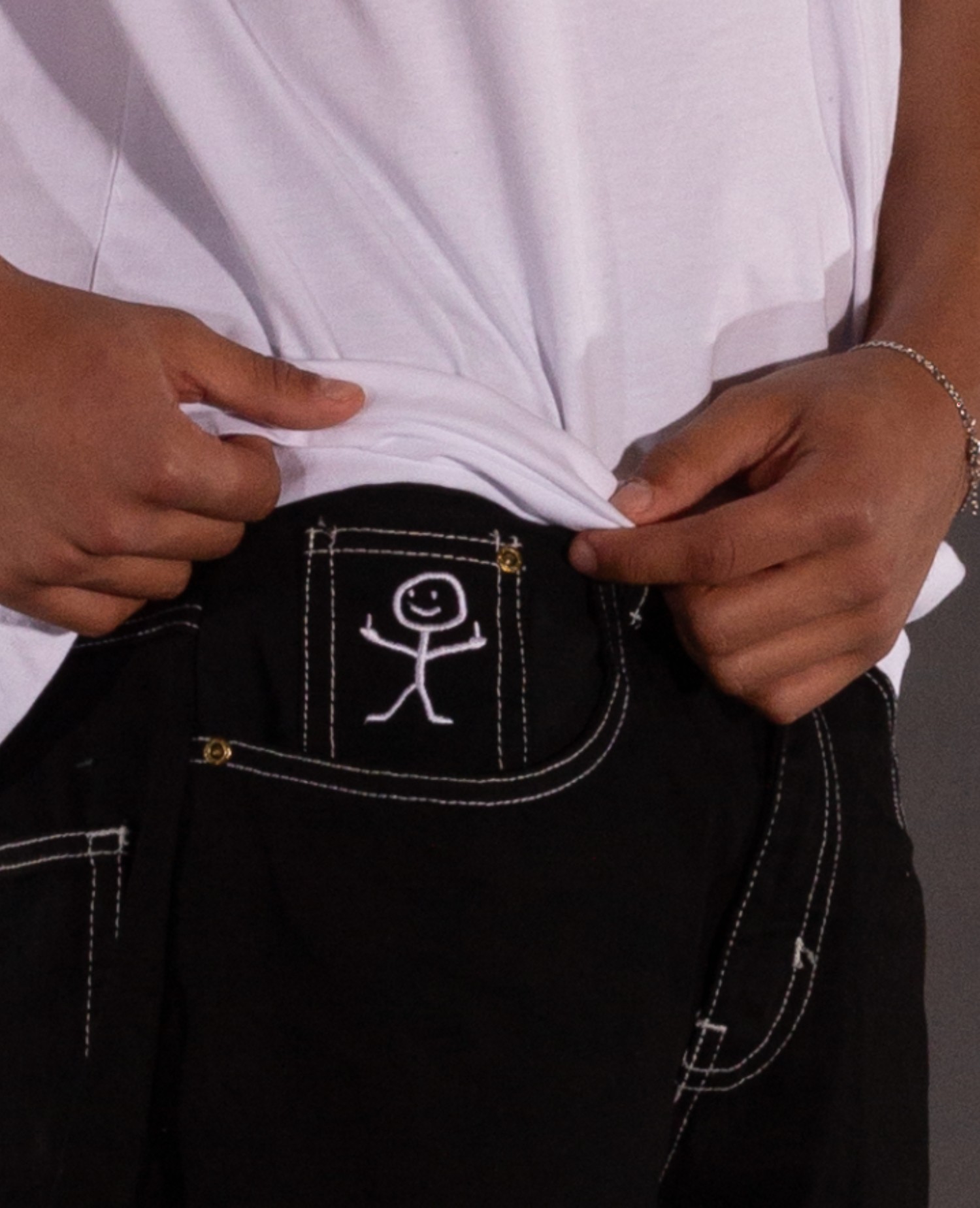 Stickman-detaljerne er ikke bare lavet for pynt. De er en del af identiteten. Sammen med den loose silhuet giver de jortsene et stærkt streetwear-udtryk, som føles markant uden at virke påtaget. Nemme at style med oversized tees, tanks, jerseys og lag-på-lag summer fits, når du vil have noget med reel attitude.