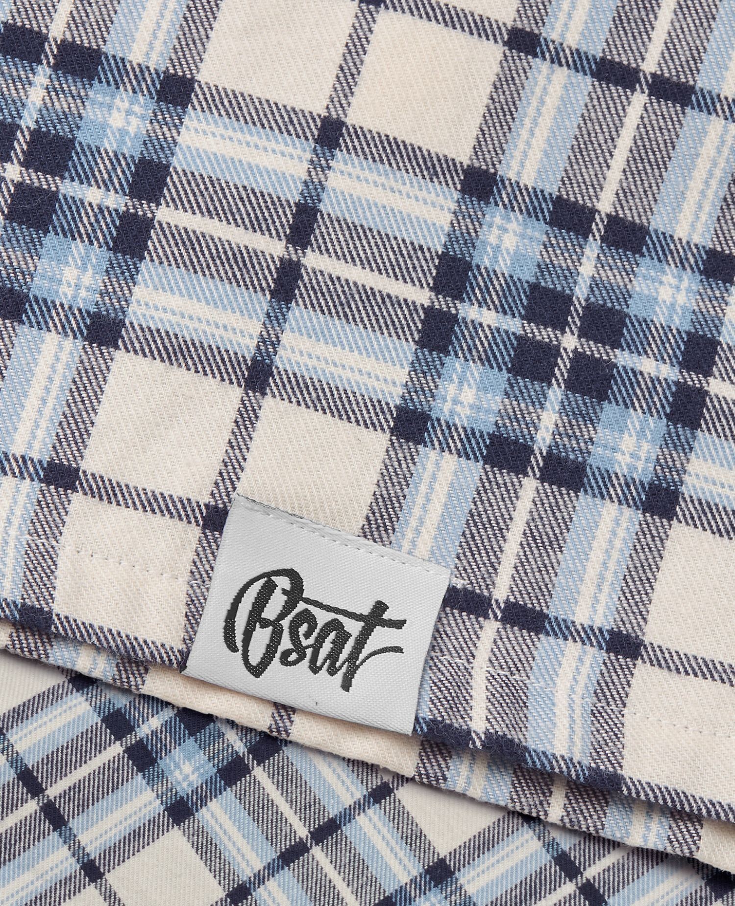 BSAT Studio Flannel Zip Shirt – Grid Navy er lavet i blød, børstet flannel med en grafisk blå/hvid tern og fuld zip. Den fungerer både som skjorte og let overshirt – til indendørs chill og udendørs lag-på-lag.