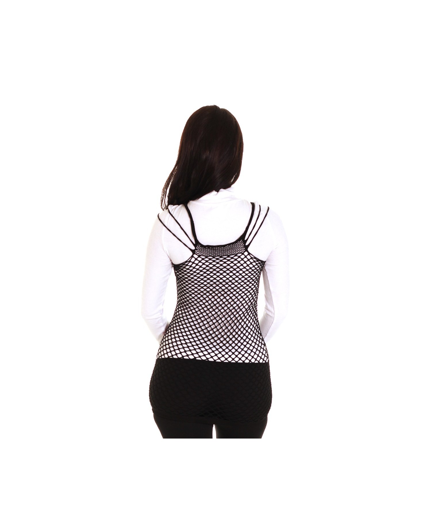 Sort iøjnefaldende fishnet top, som kan bruges som sexet top eller oven på en ensfarvet Tanktop eller T-Shirt. Både anvendelig til kortærmede og til langærmede T-Shirts.