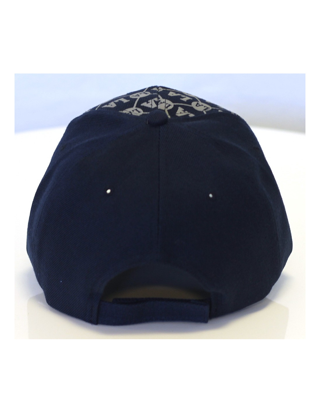 Svedig blå LA Baseball Cap fra Identity. Svedigt LA bogstavsmønster i grå, toppet af et stort gult LA med blingbling. Velcro lukning bagpå. One-size.