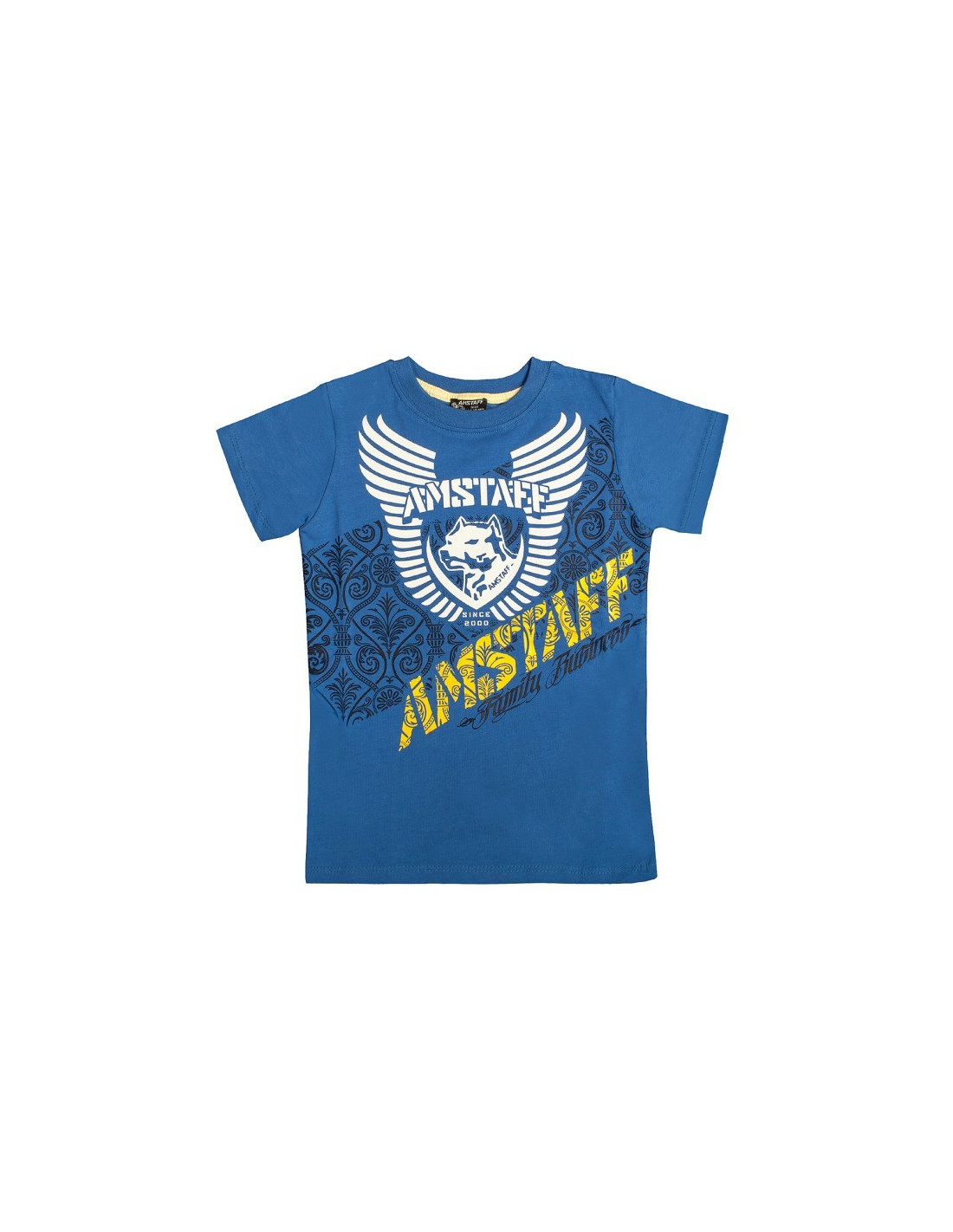 Cool og s›d bl† Amstaff T-Shirt med hundeprint p† for- og bagside. Bl›d og behagelig bomuldskvalitet.