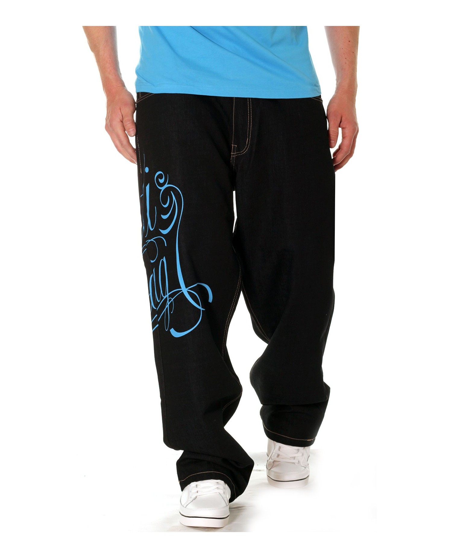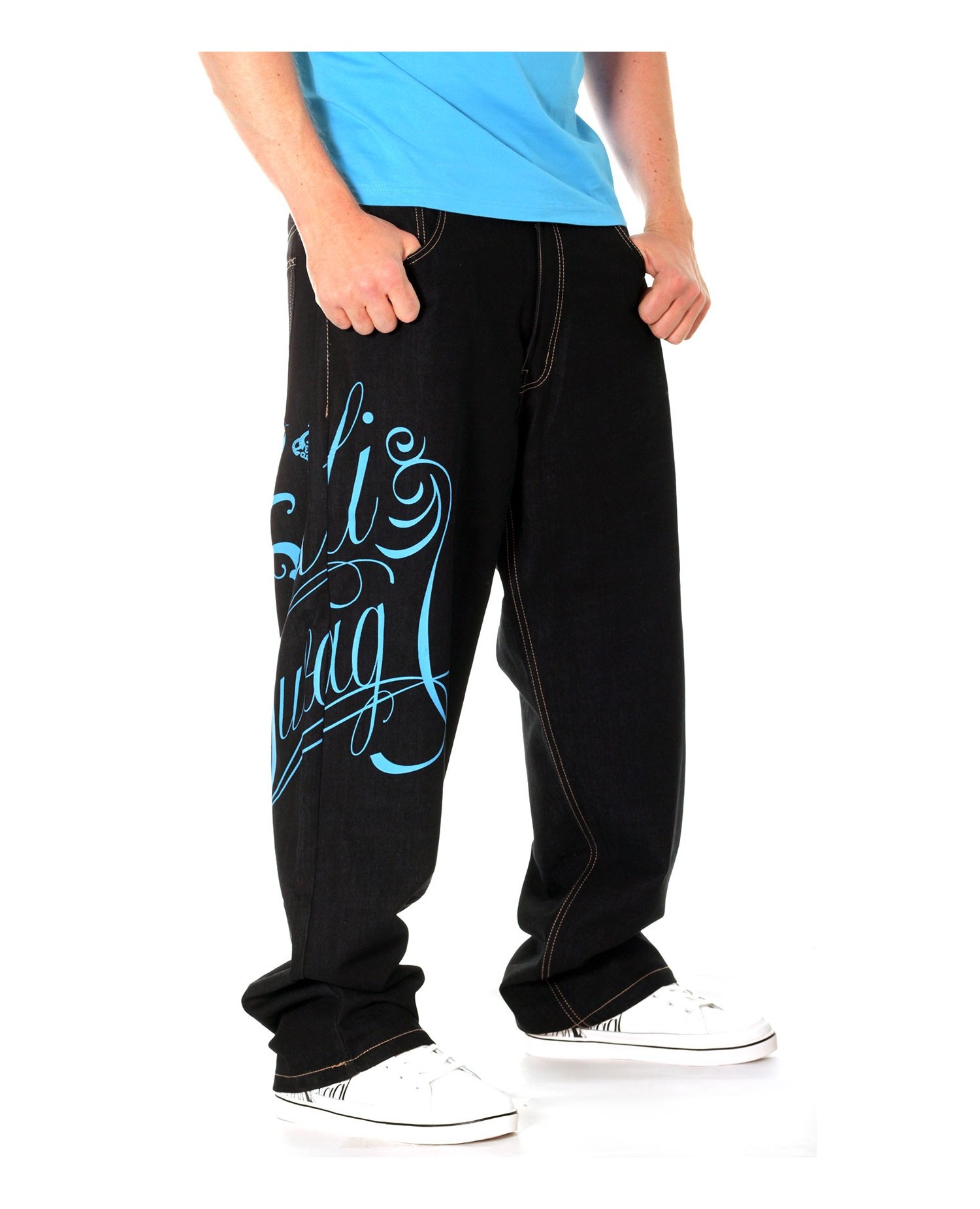 Vi er vilde med det skyblue print på de sorte baggy Jeans. Jeansene er fra BSAT's La Onda Kollektion. BSAT er et spritnyt tøjbrand med rødder i HipHop Kulturen. Chicano Art Kulturen, Gangster Rap, Bronx Hip Hoppen er i brandets DNA. Det er BSAT - Bloood -Sweat and Tears.