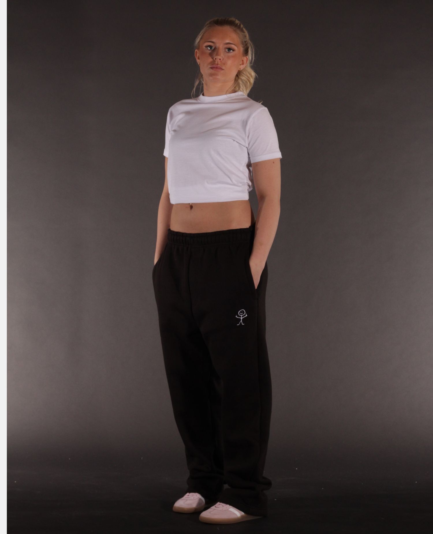 BSAT Stickman Baggy Sweatpants The Finger Black take the energy from one of the strongest Stickman expressions in the BSAT universe and move it into a baggy sweatpants silhouette built for everyday wear, heavier fits, and a more relaxed streetwear look. The black base keeps them clean and easy to style, while the white contrast embroidered Stickman The Finger logo on the front gives them the visual punch that makes the style stand out instantly.