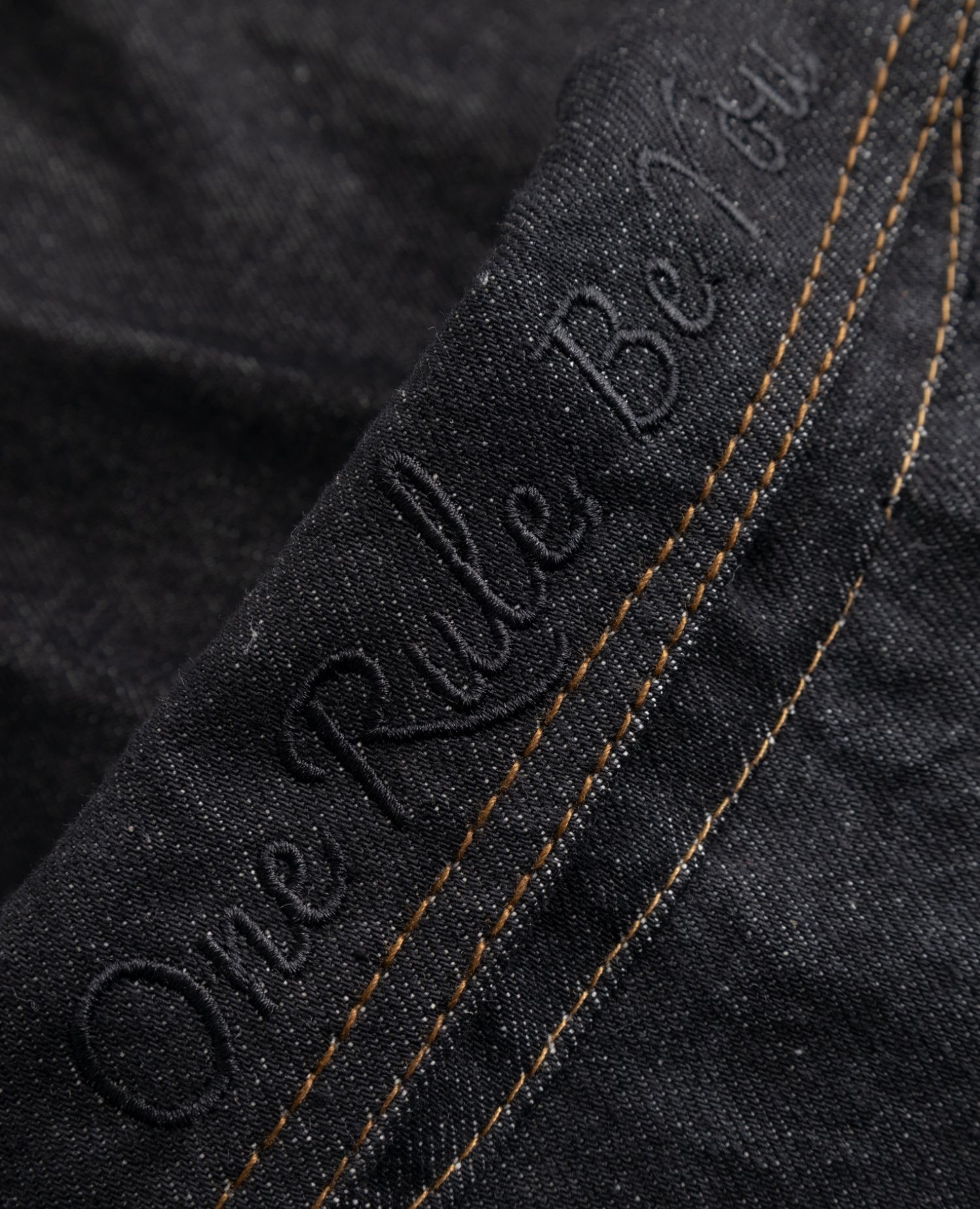The signature 4-pocket construction defines the jacket’s BSAT identity, while the red Blazed Up contrast details cut sharply against the black denim for a powerful visual expression. Finished with premium stitching and a clean silhouette that pairs perfectly with the matching jeans – or holds its own as a statement piece.