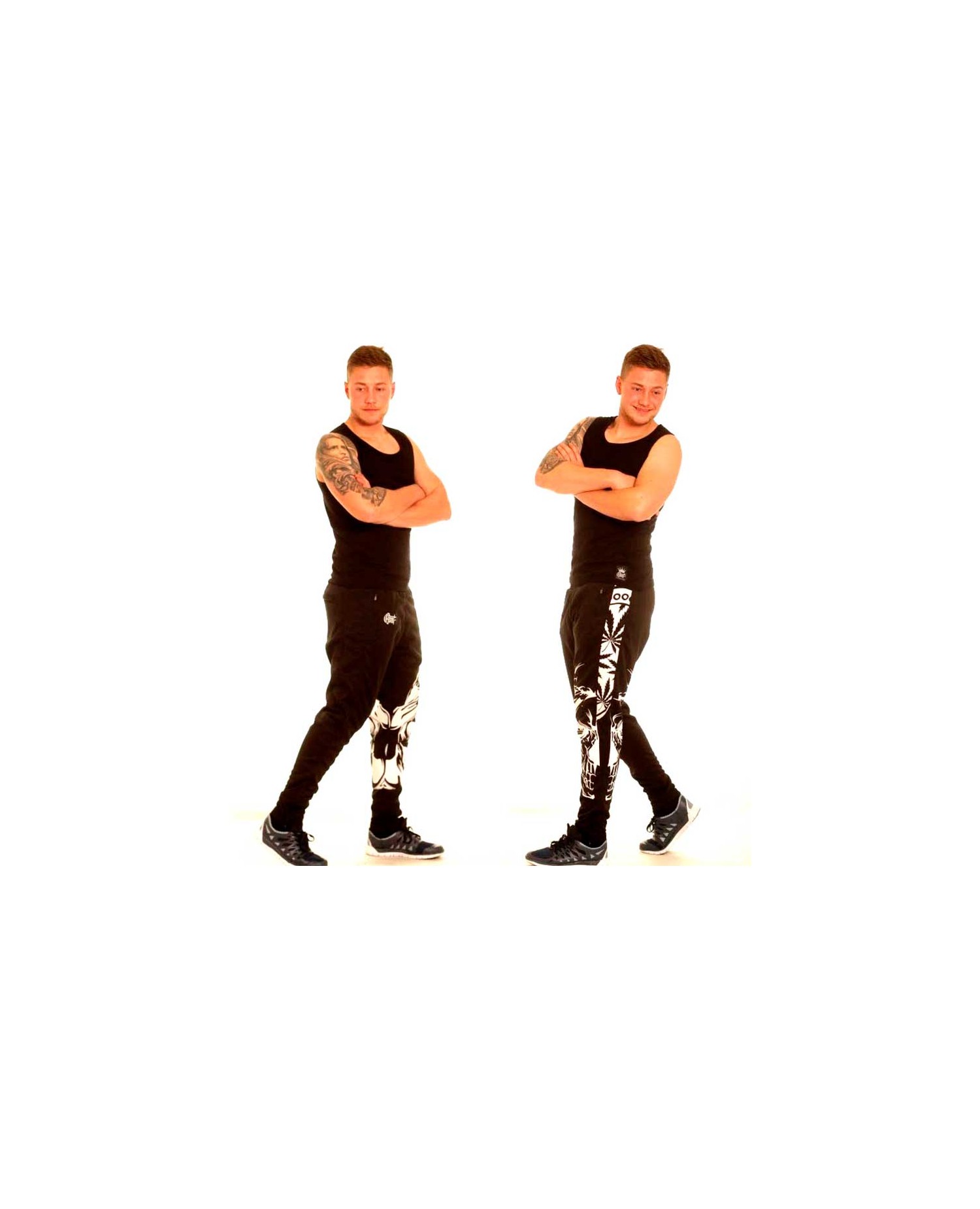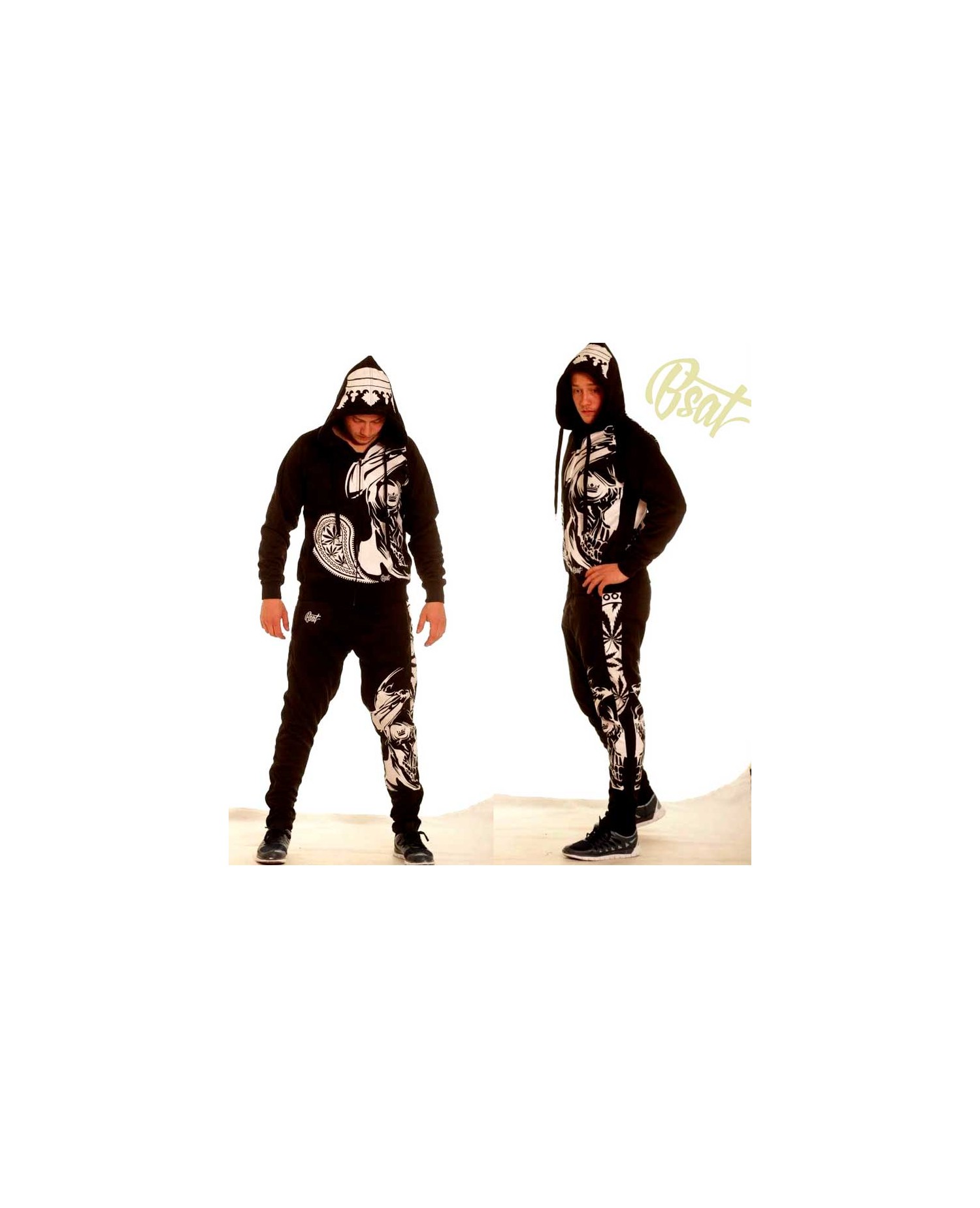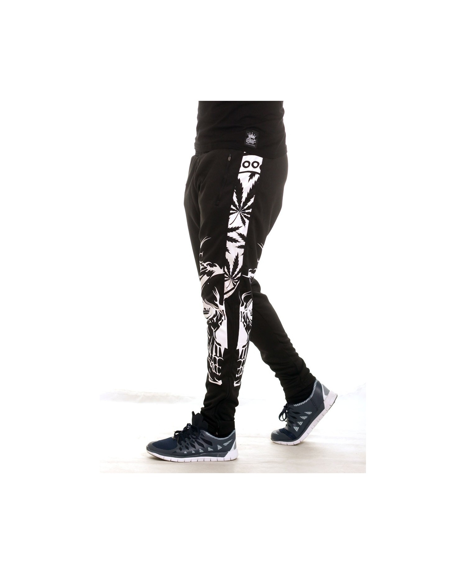De har gjort det igen! Navnet er BSAT! BSAT Clothing brand er et hip hop tøjmærke med stærke rødder i Hip Hop kulturen. Smokin' Skull Track Pants er fra BSAT's LA Onda linje,. La Onda linjen er forankret i Chicano kulturen, hvis favoritsymboler er skeletter, våben og Chicas. BSAT's Skull designs er imponerende og kunstneriske. De er håndtegnede designs i absolut særklasse. Smokin Skull designet er ingen undtagelse. I Rudecru jubler vi i kor med alle tilhængere af BSAT's La Onda kollektioner. Endnu et kongedesign i rækken. De sorte Smokin Skull Track Pants med hvidt print er designet i BSAT's sporty Panther pasform. Panther Track Pants har 2 karakteristiske sidepaneler, 2 lynlåslommer, lynlåse forneden og en lynlåsbaglomme. #SmokinHot