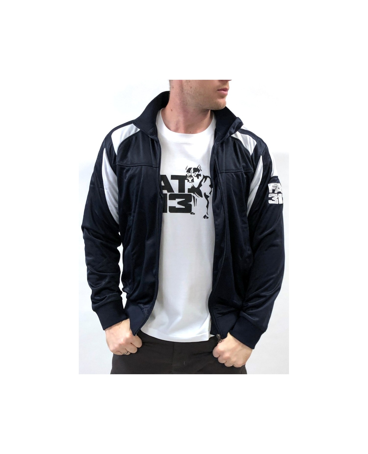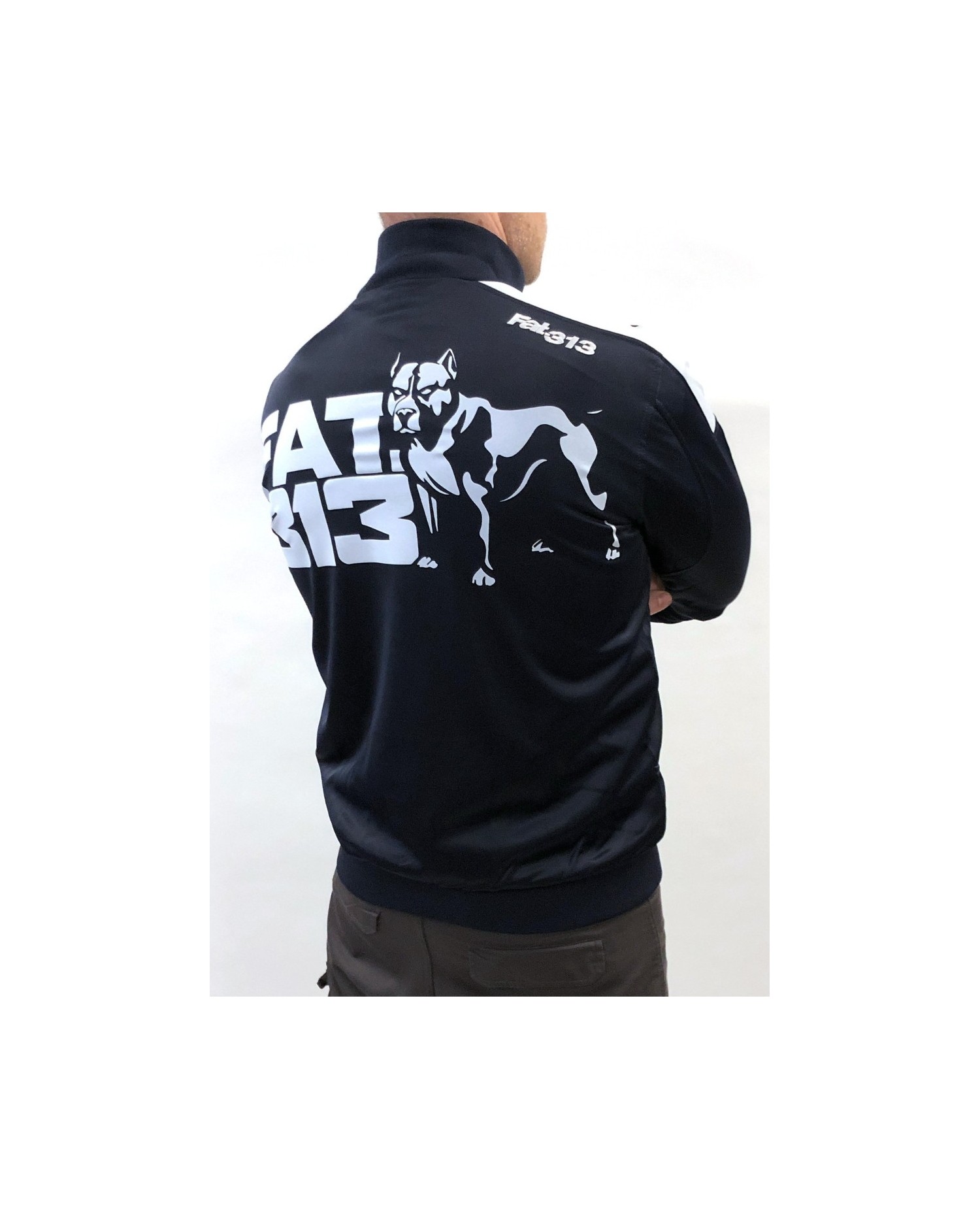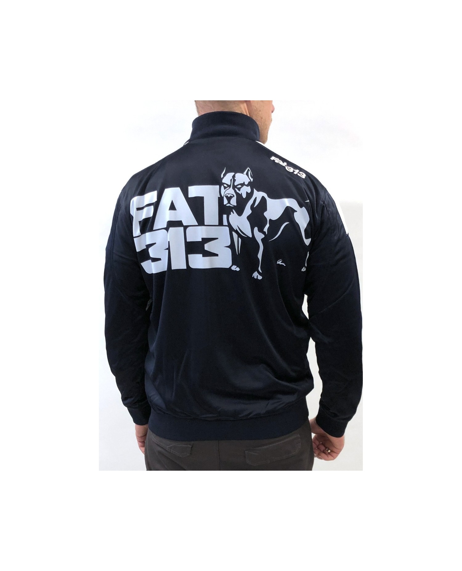 FAT313 kombinerer det trendy Legend design med brandets nye Master Trackjacket. De hvide paneler i den blå TrackJacket fremhæver den maskuline figur og giver et cool og sporty look. Looket forstærkes yderligere af den hvide stribe på ærmernes ribkante. Et stort trykt brandlogo hundedesign troner på ryggen, mens brandlogoet er stitchet på venstre ærme og det karakteriske Forester logo er stitchet på højre skulder. Jakken er forsynet med en sporty inling. FAT313 er et enestående premium Brand med sit helt eget udtryk: FAT313 spænder fra designs med sværvægtstunge brandlogo broderier over afdæmpede hundebrand patches til store broderede FAT313 hunde. Tilfælles for alle designs er, at FAT313 har meget god stil og høj klasse.