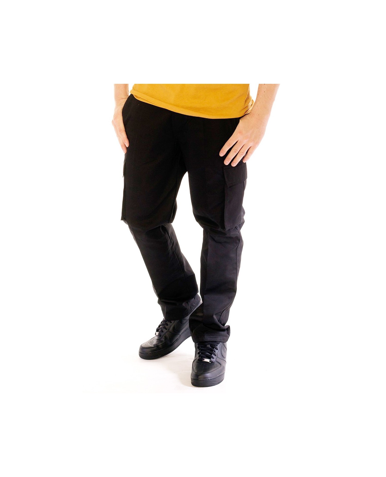 Cargo bukserne fra det amerikanske streetwear brand Access Apparell er sorte med sort canvas bælte. Cargo bukser giver et stærkt, maskulint look , er behagelige og praktiske med de rummelige sidelommer.