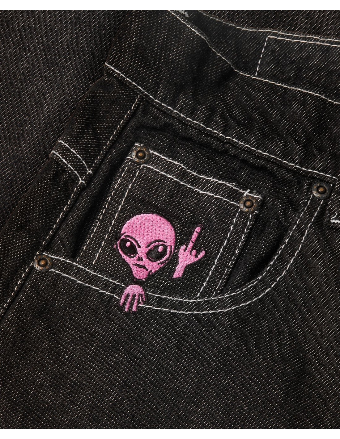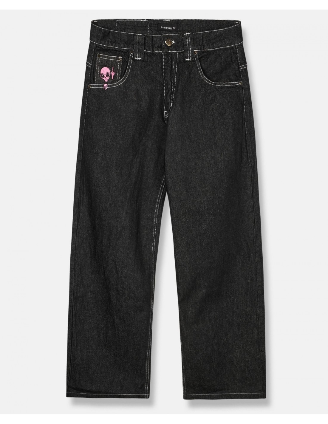BSAT Aliens 4 Peace The Finger Raw Black n Pink Baggy Jeans