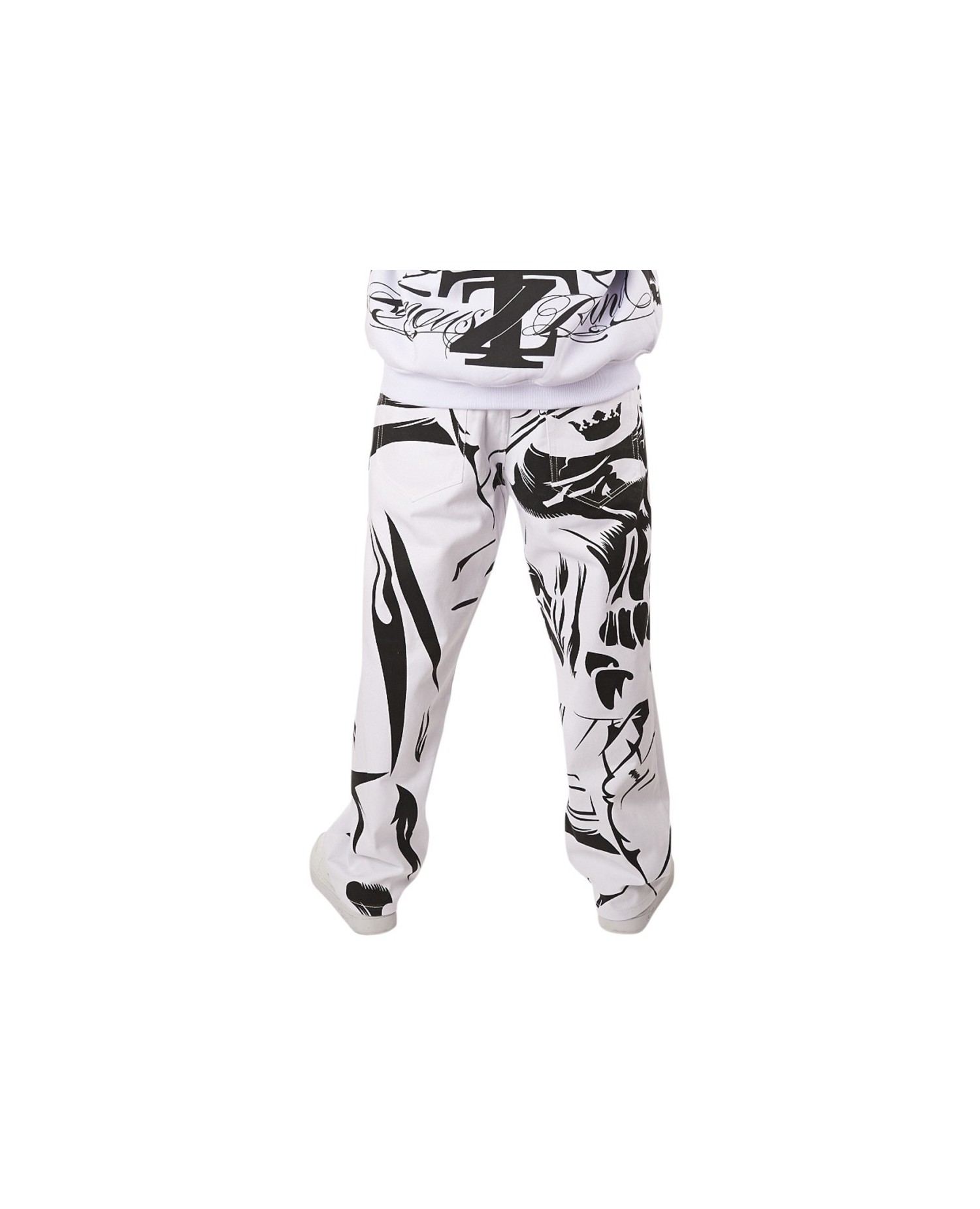 Tsekkaa nämät erikoiset farkut Townzilta. Valkoiset baggy farkut mahtavalla Skull all-over designilla. Printti ainoiastaan taka-puolella.