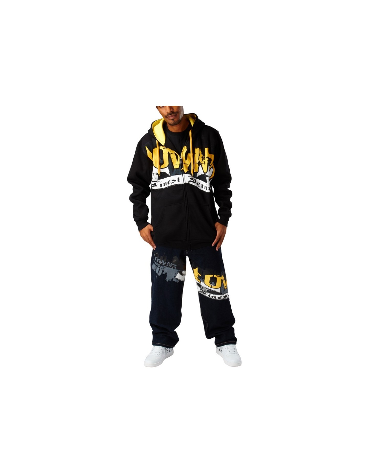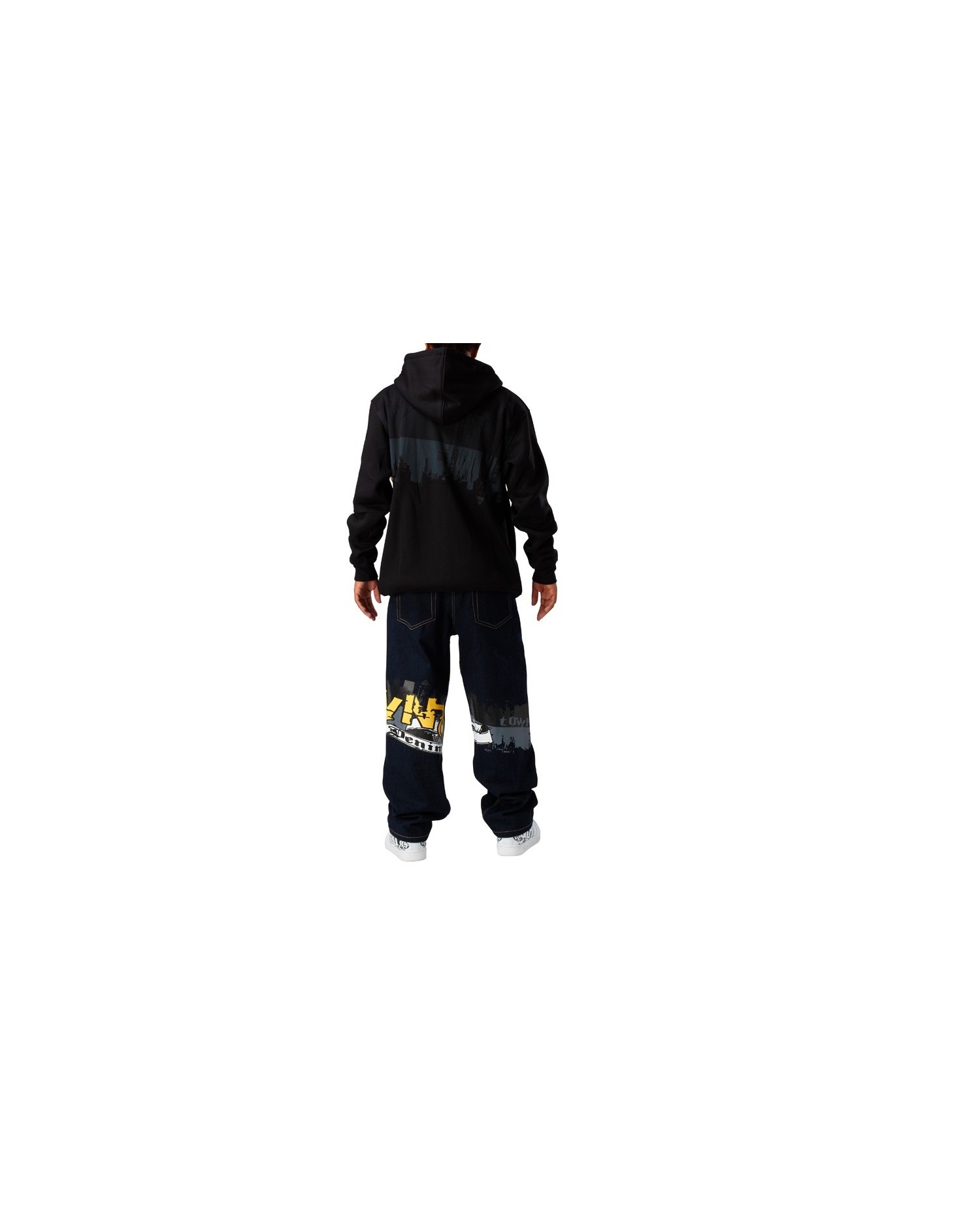 Cool hip hop puku, tummat värit. Hanki huppari ja farkut erityiseen hintaan.