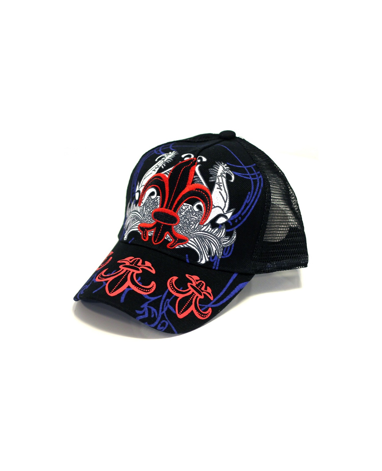 Sej Snapback Baseball Cap fra det amerikanske mærke Identity. Cappen er sort med flerfarvet catchy tryk og syning. One-size med snapback lukning.