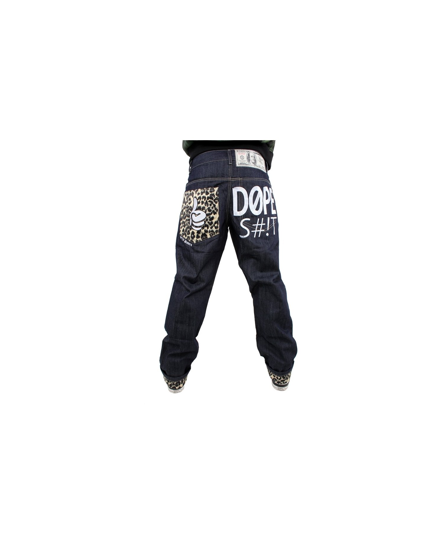 Dope dope dope.. Mega populært i øjeblikket på caps, tees, hoodies, og nu endelig på et par jeans fra Dirty Money mærket. Lækre mørke raw denim jeans med fedt motiv.
