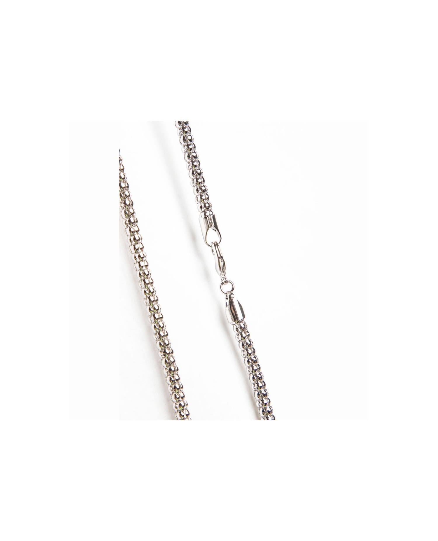 Flot sølv-farvet mikrofon halskæde med lyse sten. Bredden på vedhænget er 2,5 cm og længden 7,5 cm.