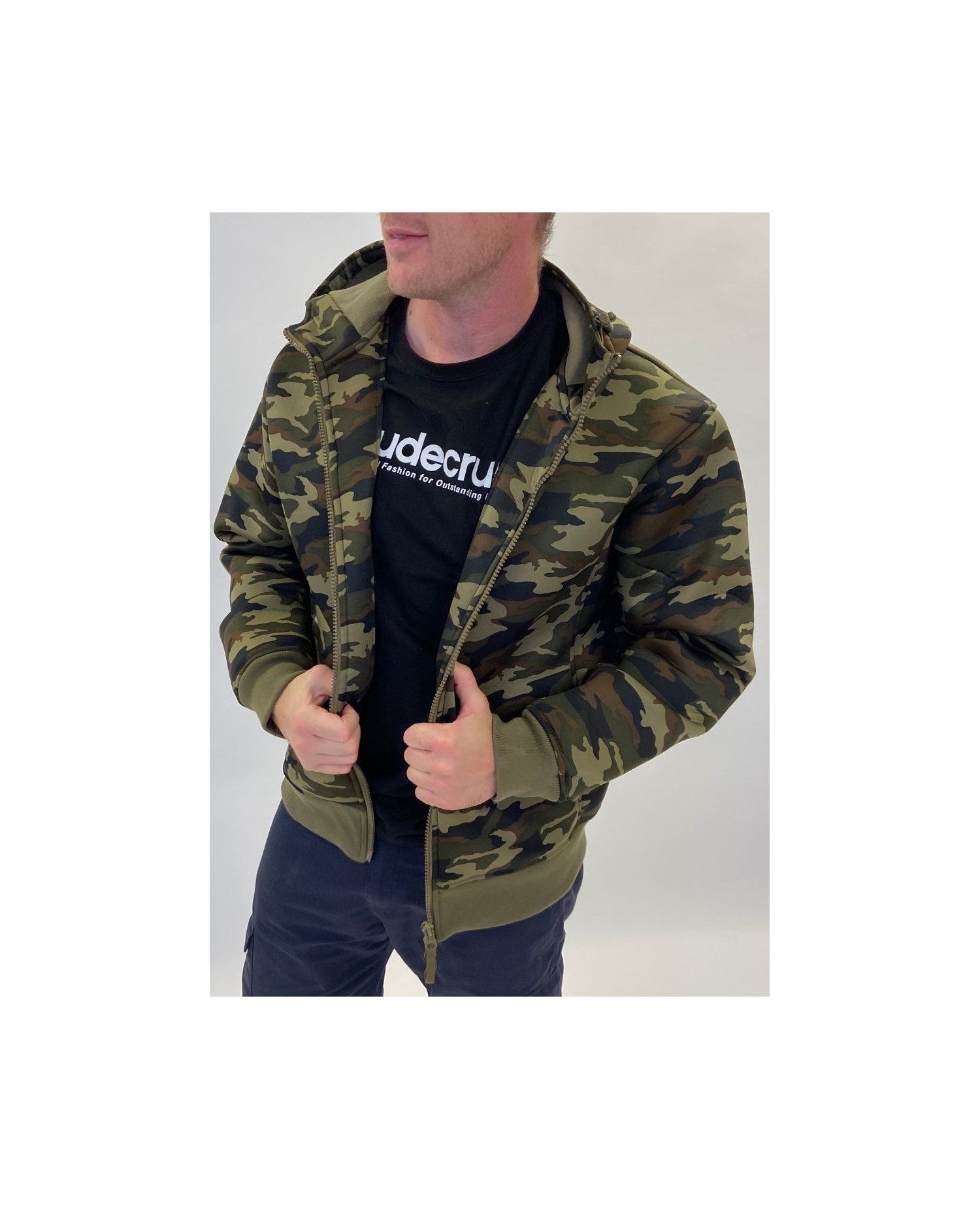 Woodland Neopren Jakke fra TechWear. Jakken er med hætte og robust, praktisk og maskulin. Ribkante på ærmer og forneden i olivengrøn. Blød polyester inlining. Materiale i øvrigt: 90% Polyester, 10% Polyamid.