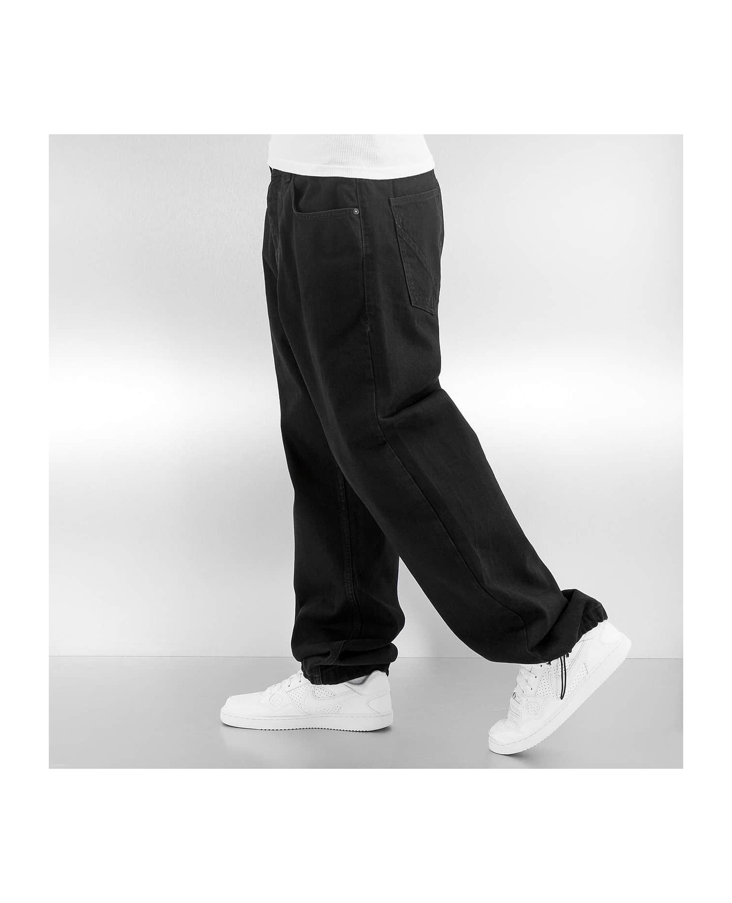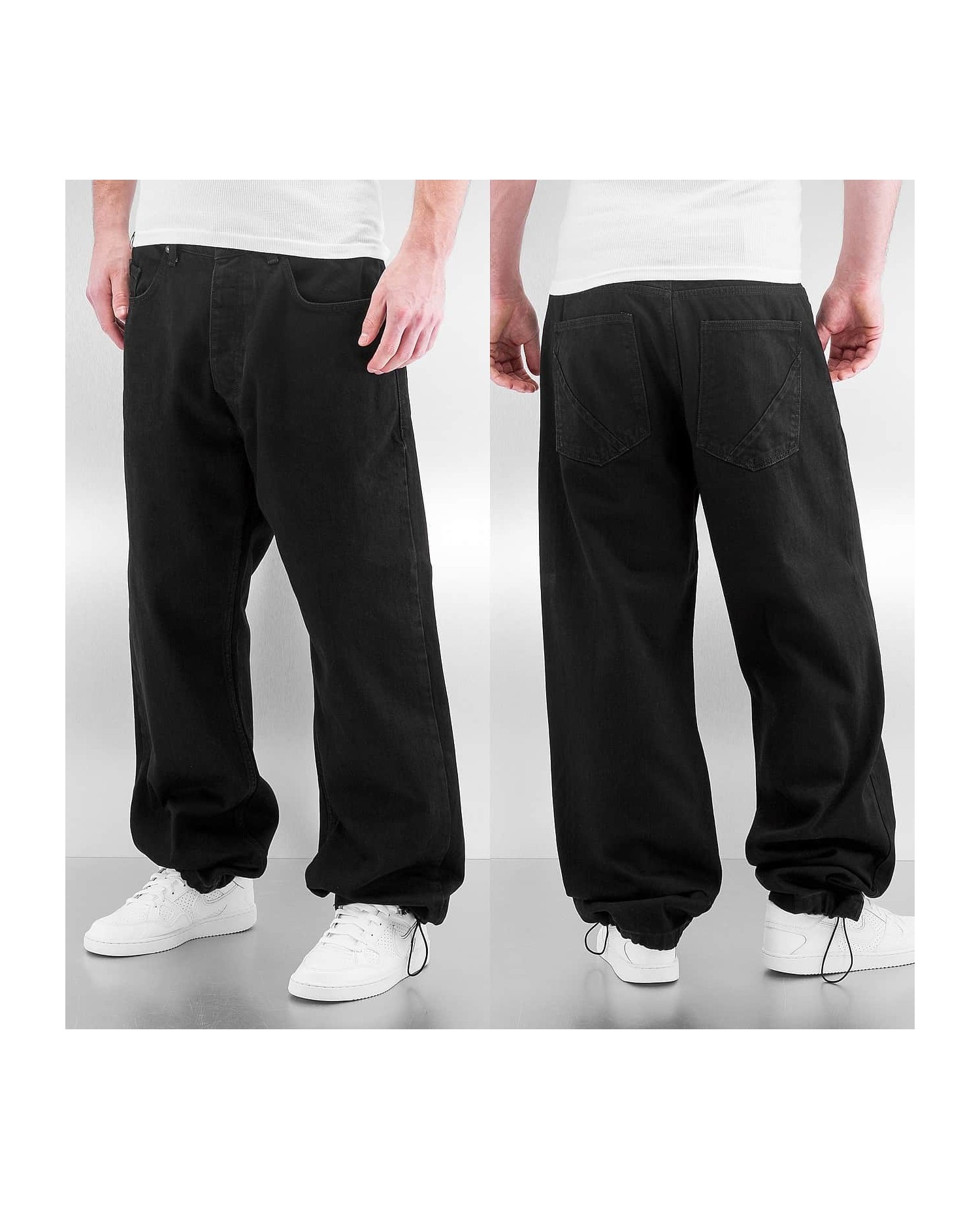 Klassiske svarte baggy Hip Hop Jeans fra det populære hiphop klesmerke DNGRS. De svarte denim Jeans har også svarte syninger og en svart justerbar snørebånd forneden.