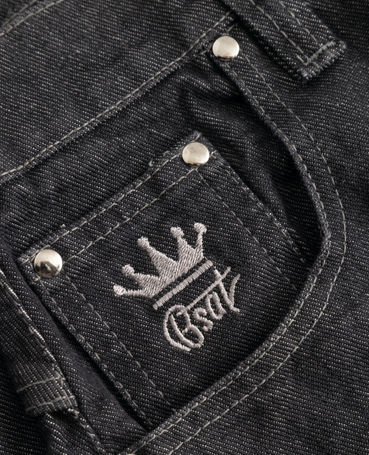 Black washed denim with grey faded highlights