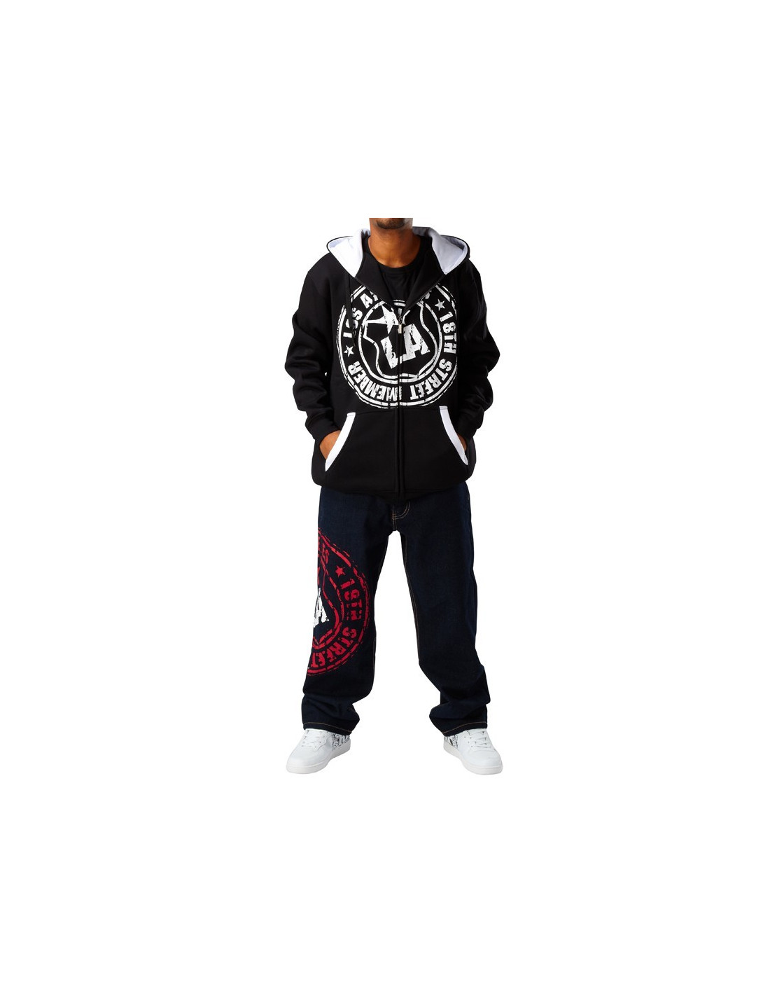 Fed streetwear jeans fra Townz Brand. Modellen er helt lyst denim med det fede Hip Hop Aint Dead logo fra Townz.