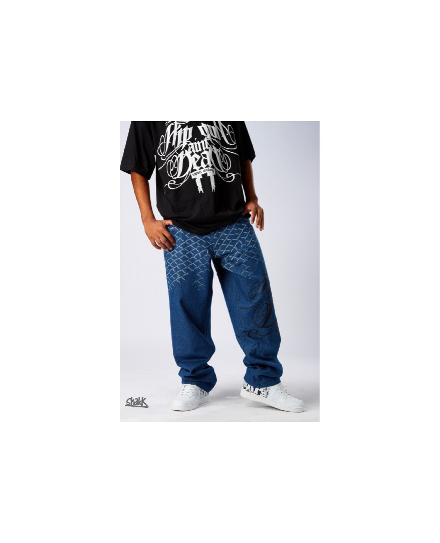 Fed streetwear jeans fra Townz Brand. Modellen er helt lyst denim med det fede Hip Hop Aint Dead logo fra Townz.