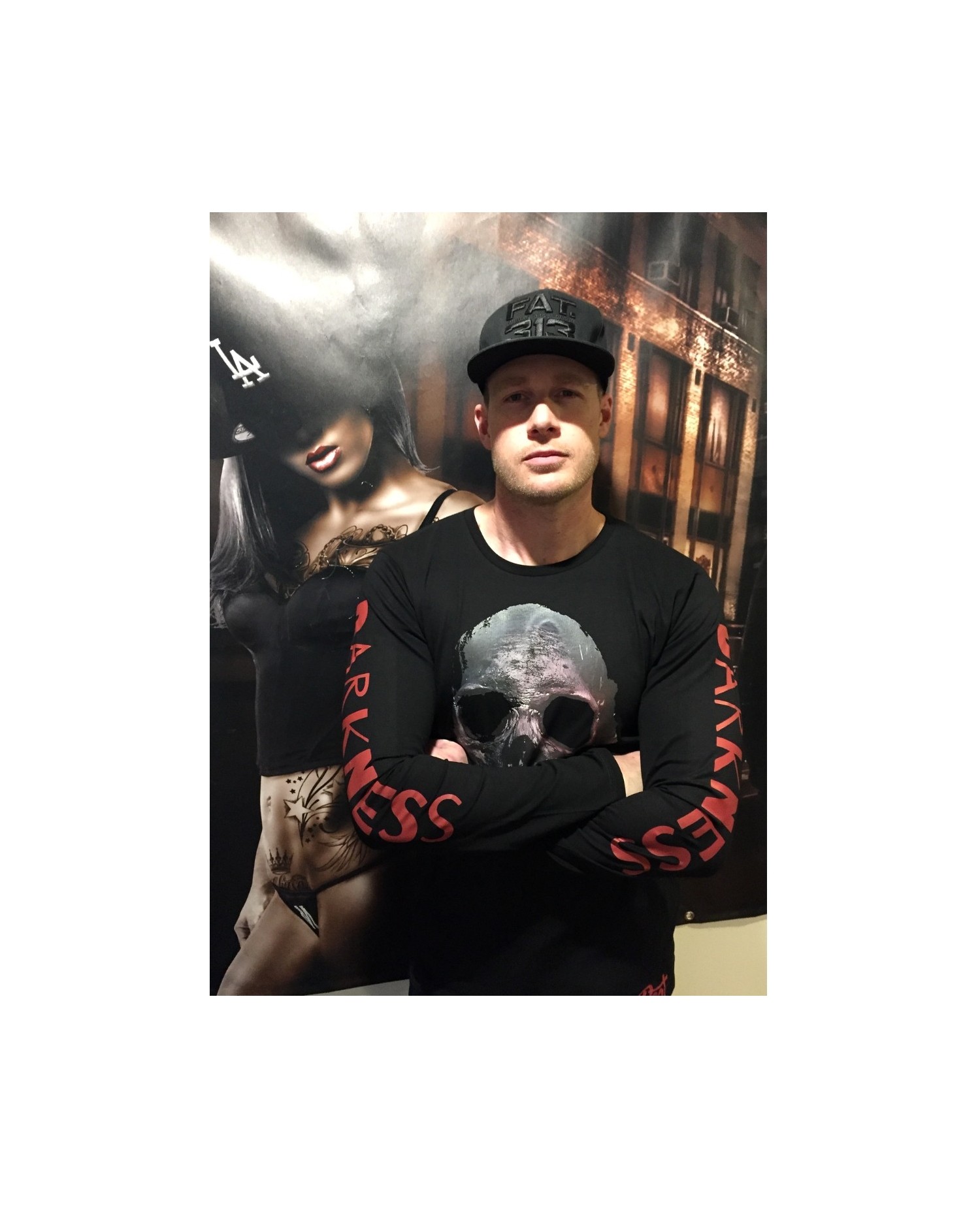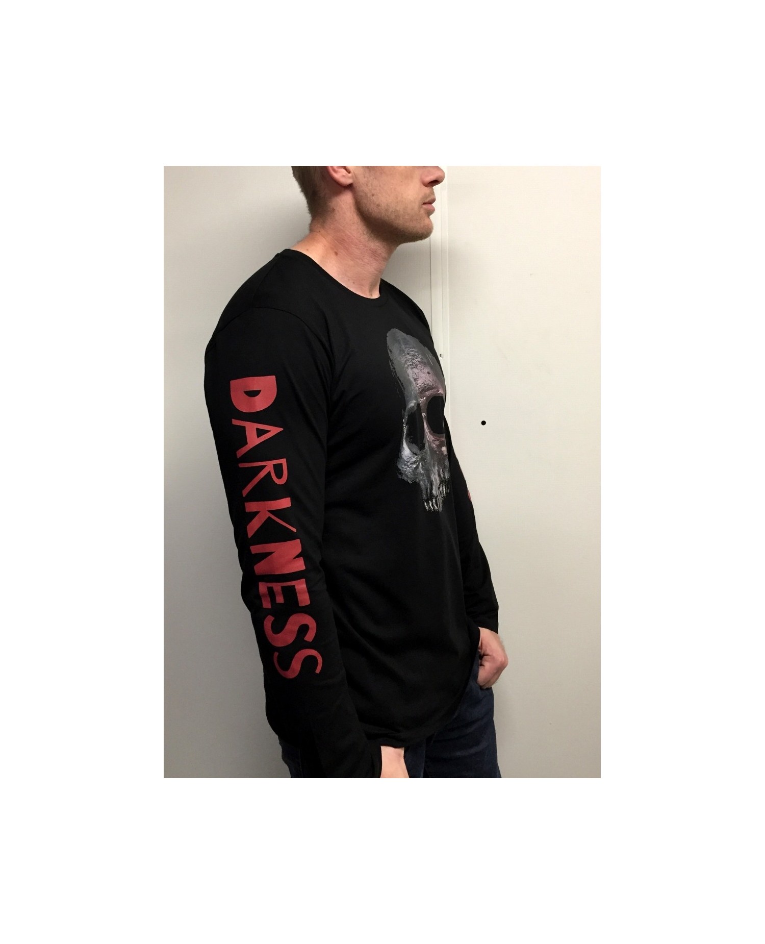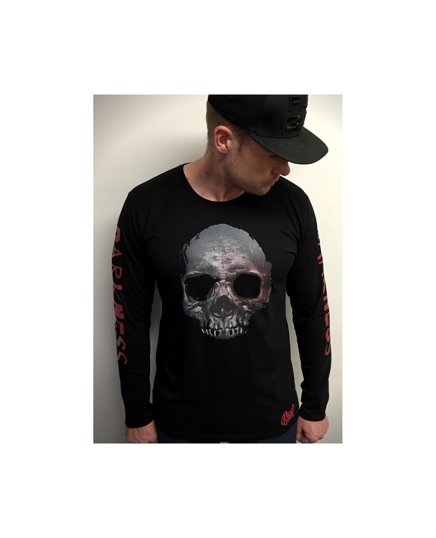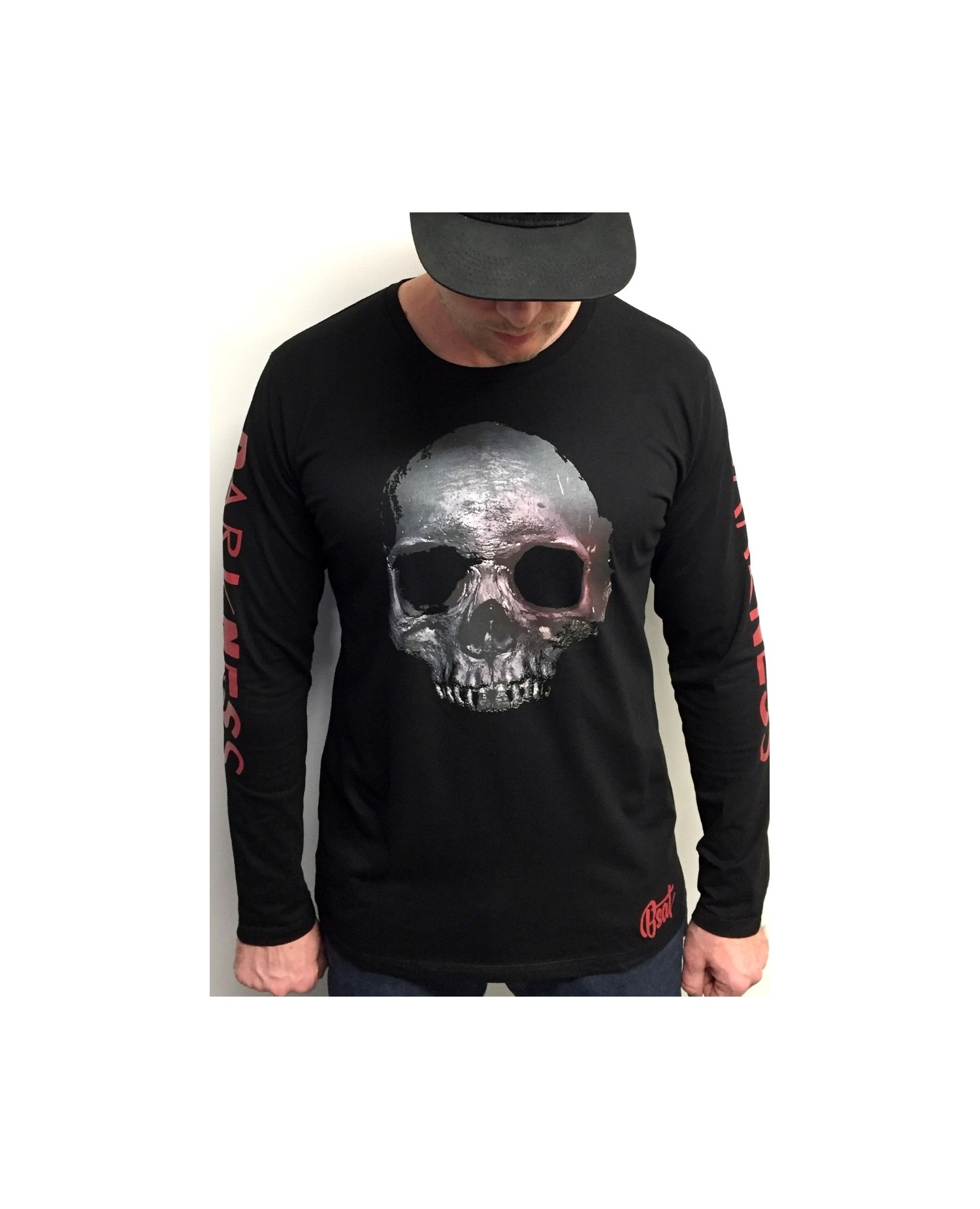 Darkness Skull L/S T-Shirten er fra RudeCrus RebelFashion Brand BSAT Clothing og fra tøjmærkets El Barrio linjen. Et mørkt Skull troner på brystet , mens Darkness står skrevet ned langs begge ærmer i en dyb rød farve med El Barrio skrift. Den langærmede T-Shirt er sort og produceret i lækker og let bomuld.