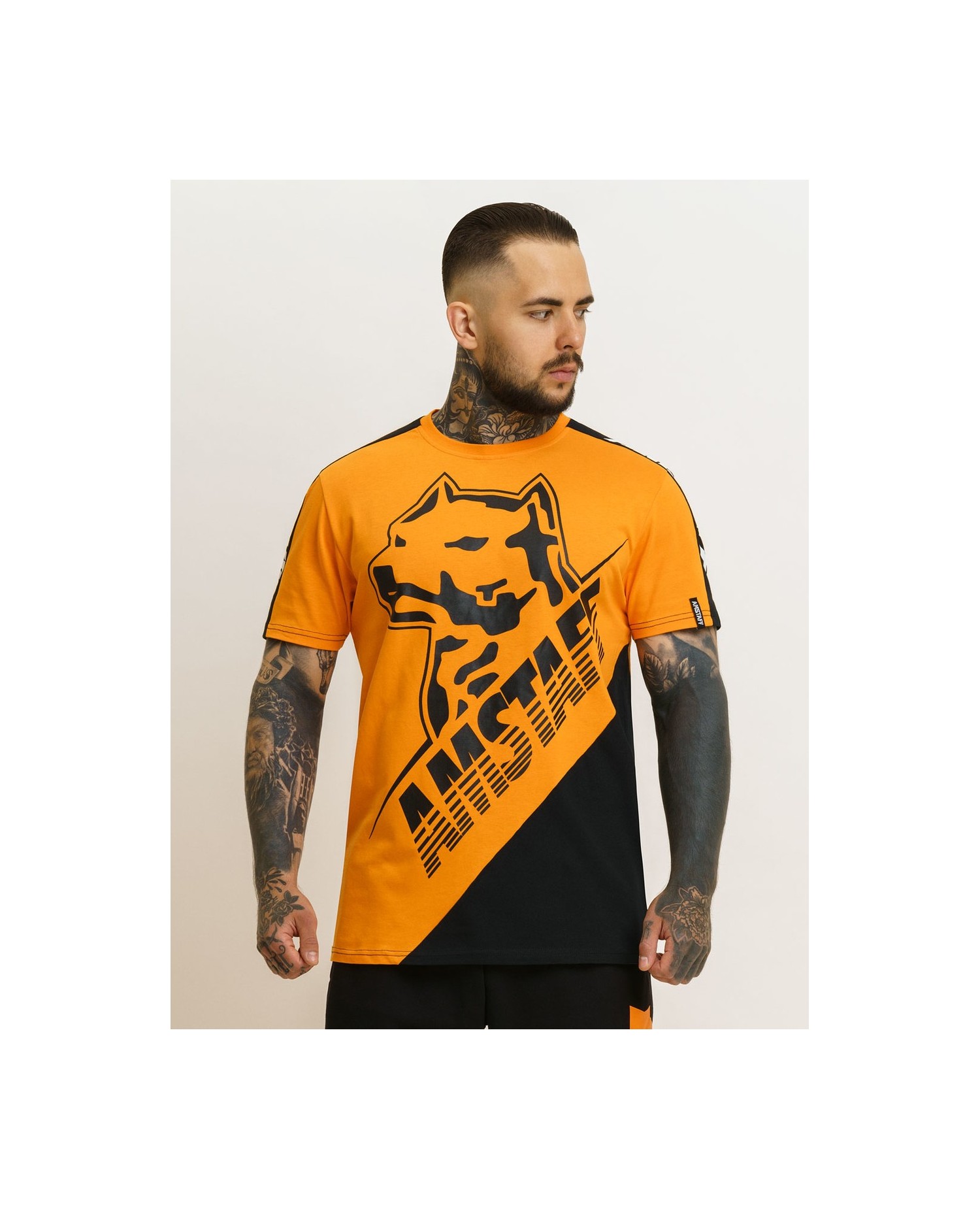 Cool T-shirt i fed orange farve. Stilfuldt brandlogo trykt på forsiden og cool brand logo print på bagsiden.