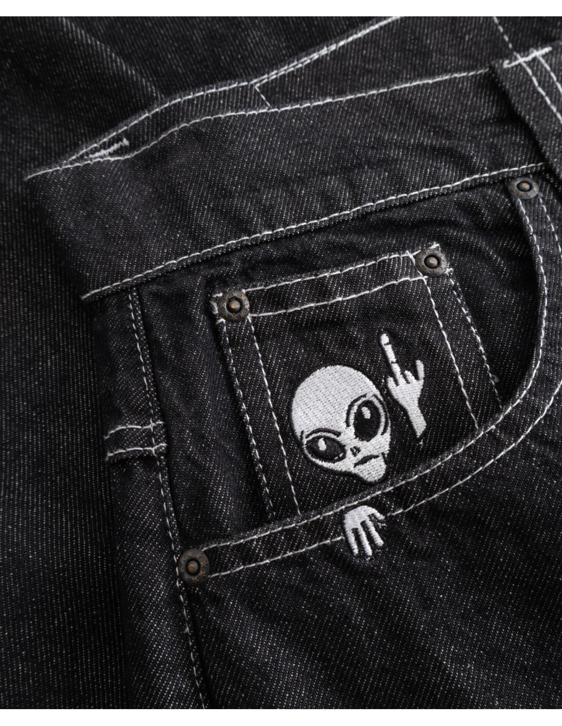 BSAT Aliens 4 Peace The Finger Raw Black n White Baggy Jeans