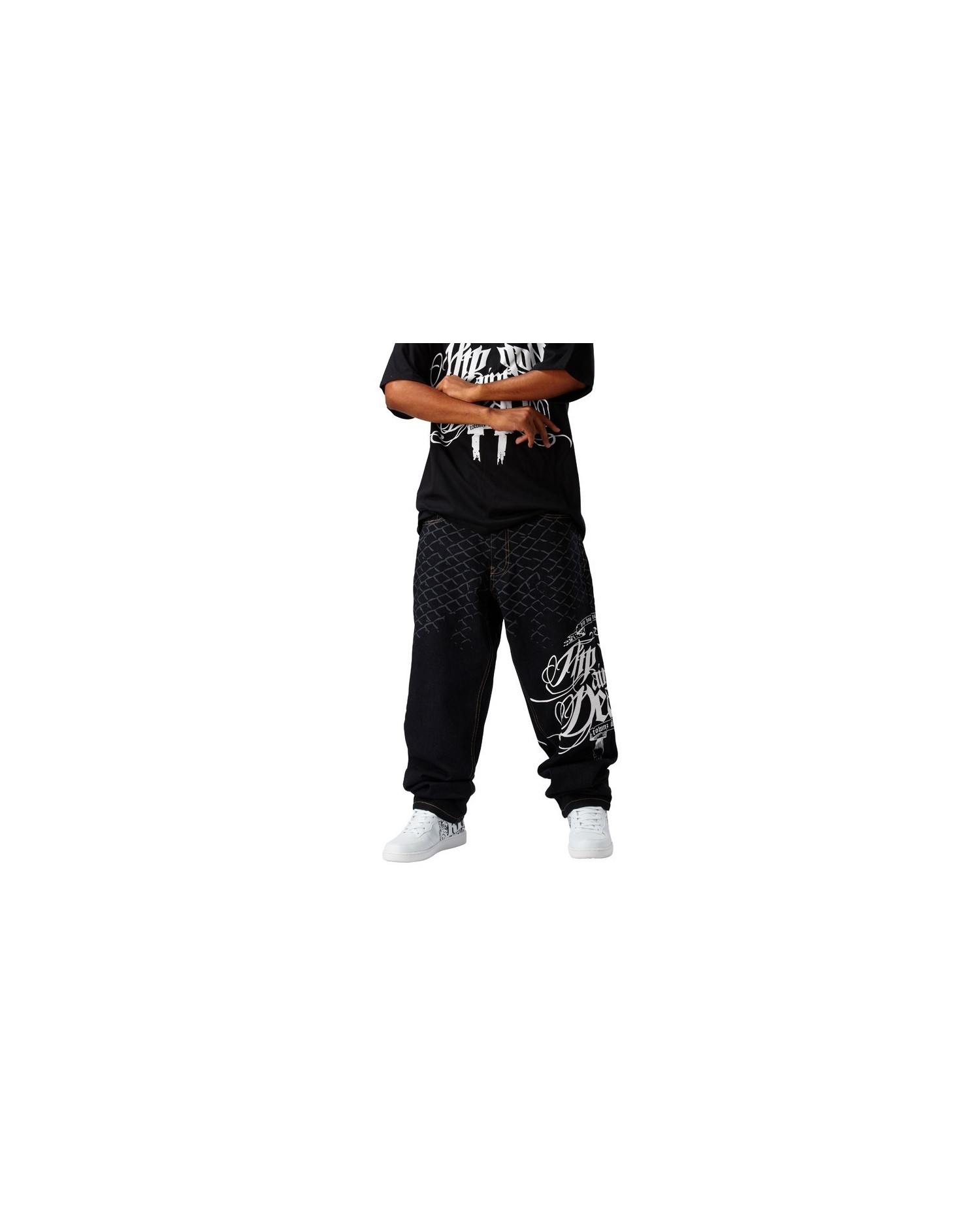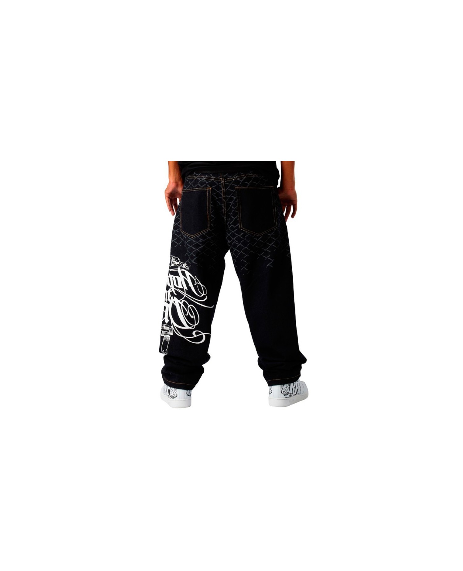 Streetwear jeans från Townz Brand, modell i en mörk denim jeans färg med tryck på baksidan.