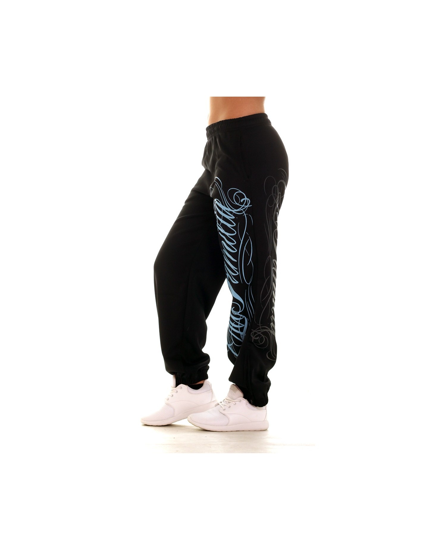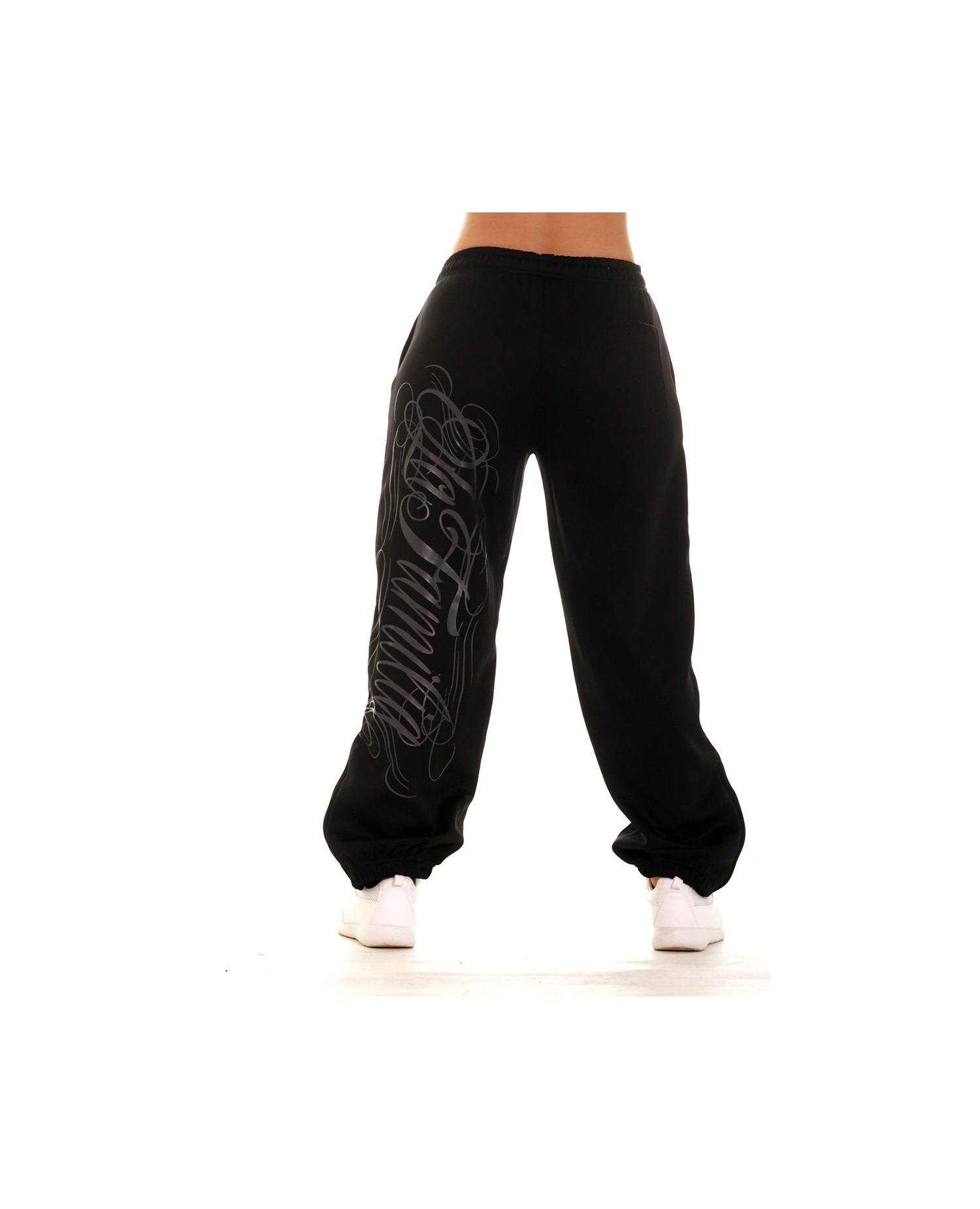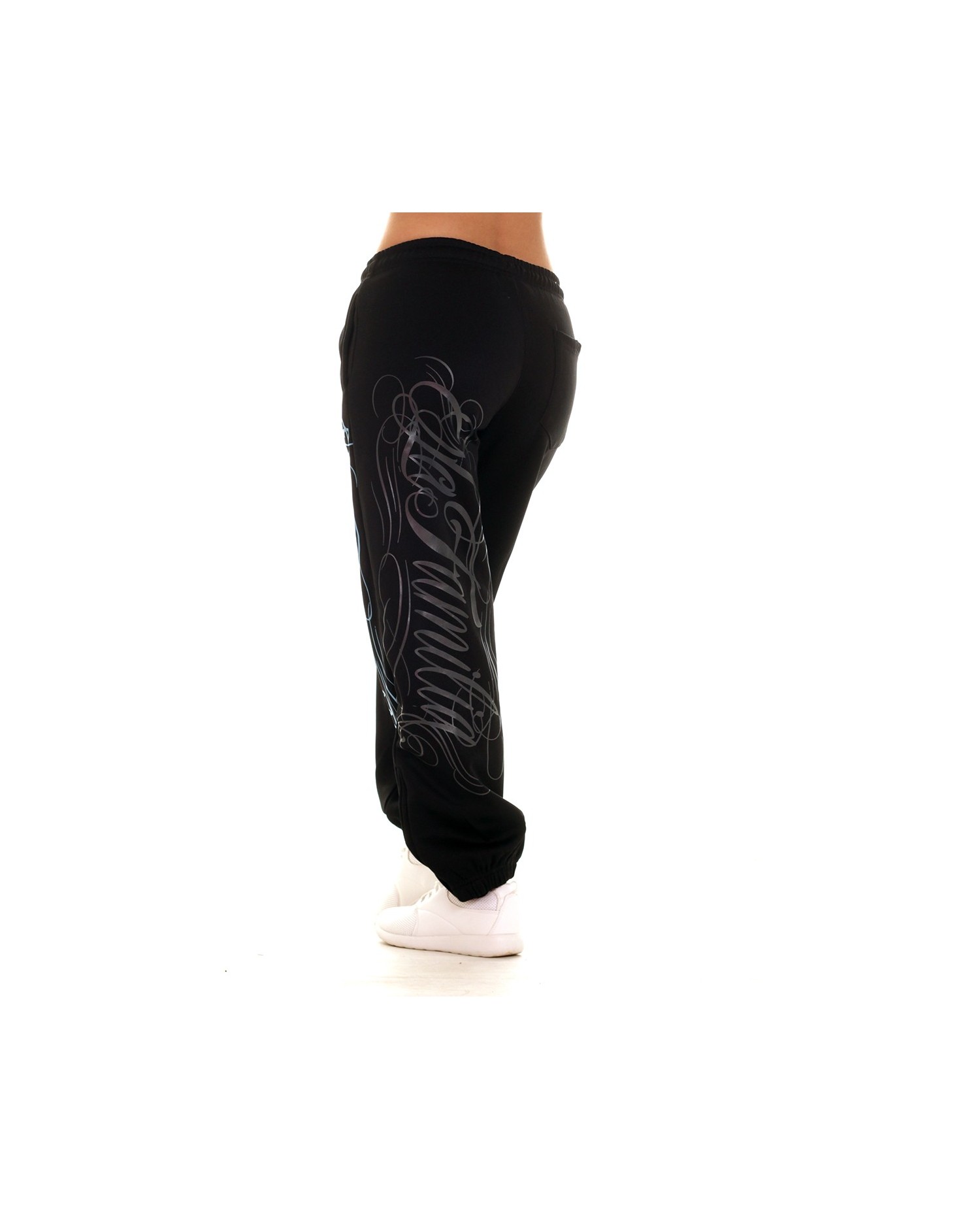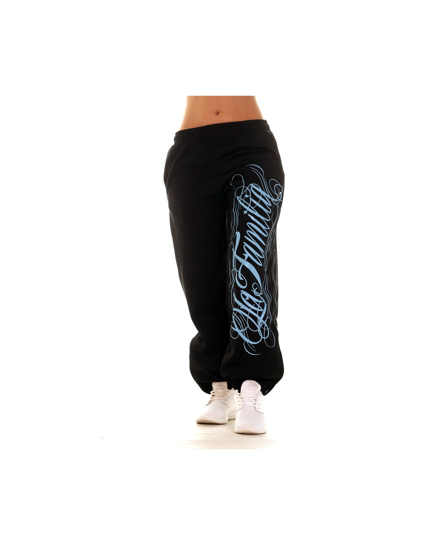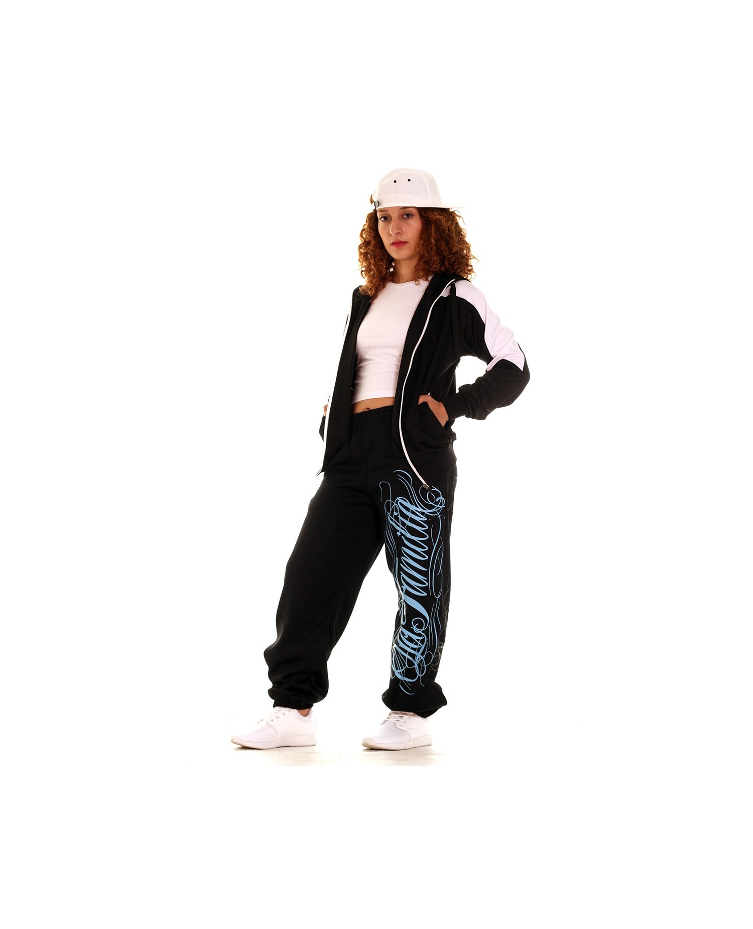 Snygga sweatpants från hiphop märket BSAT. LA FAMILIA designen är från märkets Straight Outta Compton linje. De svarta sweatpantsen har ett stort ljusblått handmålat LA Familia print på vänster ben. Printet kommer igen i en mer neddämpad grå färg på baksidan. På bakfickan är det placerat ett litet brand logo batch. Designen är mycket välkänd och stark. Det är rå skönhet och förmedlar ett viktigt och snyggt budskap. I RudeCru familjen hyllar vi också LA FAMILIA. Ladies, passformen är baggy.