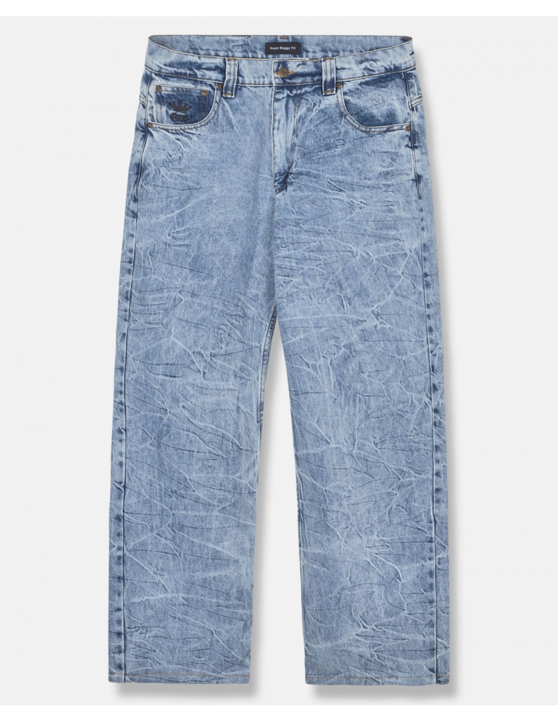BSAT Super Baggy 90s Pac Wrinkle Marble Jeans Ocean Blue