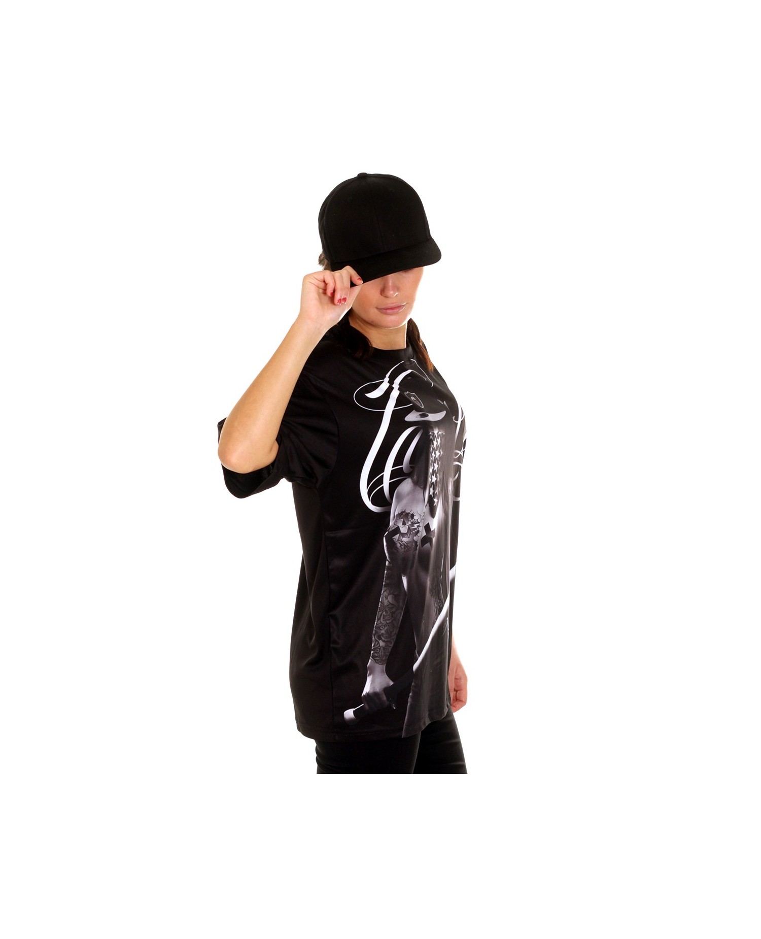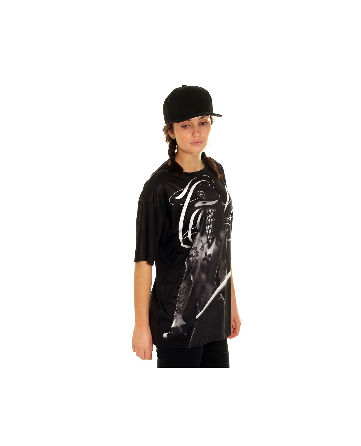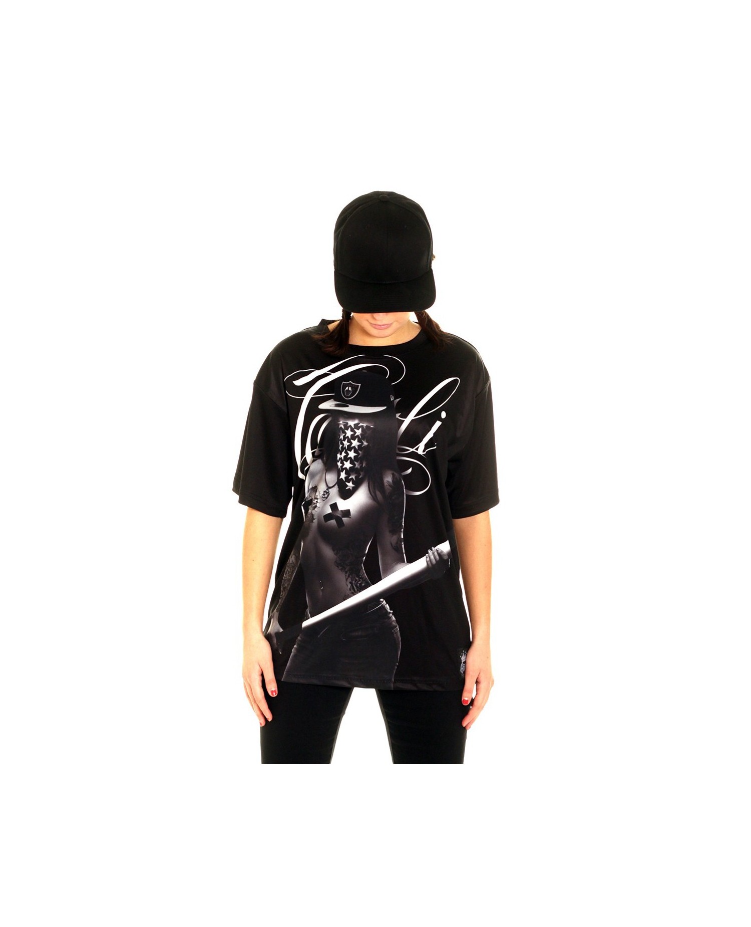 BSAT Baseball Chica Tee Black Ladies Oversize